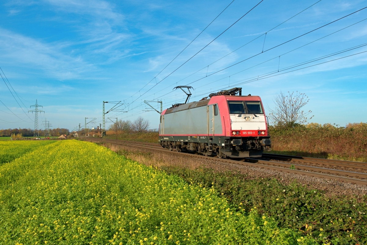 Dto.185 593-1 am 13.11.2020. Hier war die Lok bei Minden (HM) Evesen als