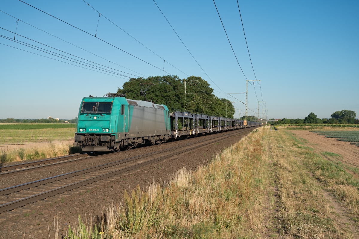 Dto. 185 610-3 am 03.07.2022 bei Klein-Gerau (FKGE) mit einem Touax Laaers