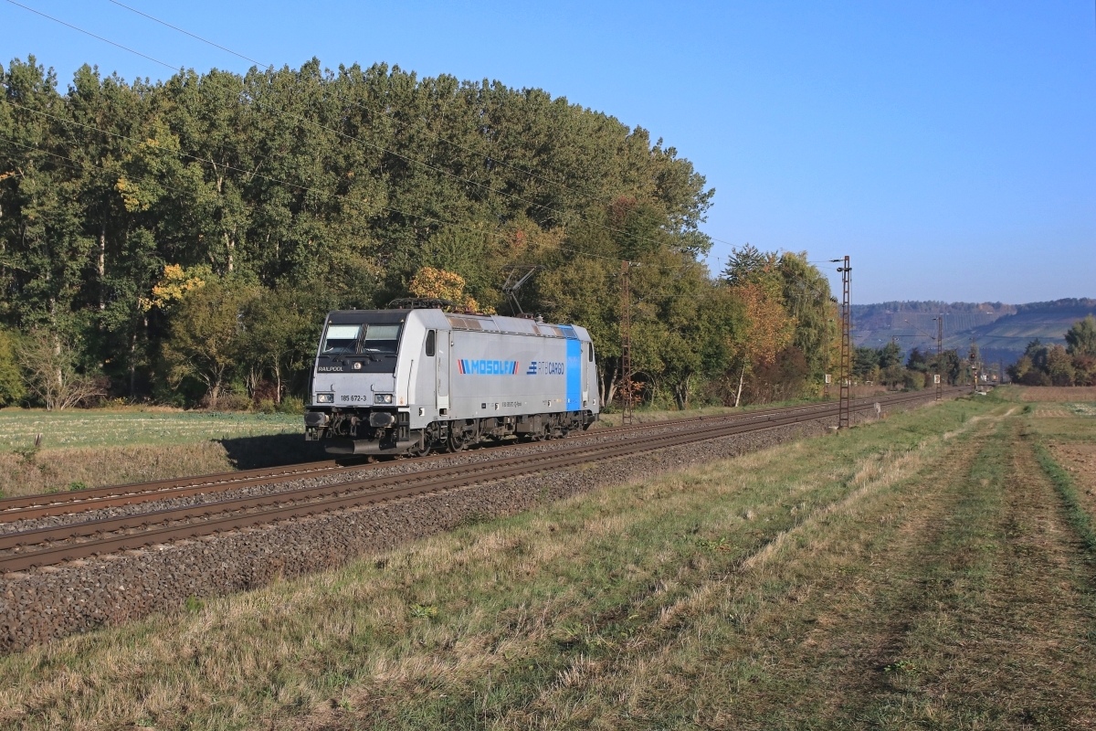 Dto. 185 672-3 am 11.10.2018 als Tfzf bei Retzbach-Zellingen Rtg.