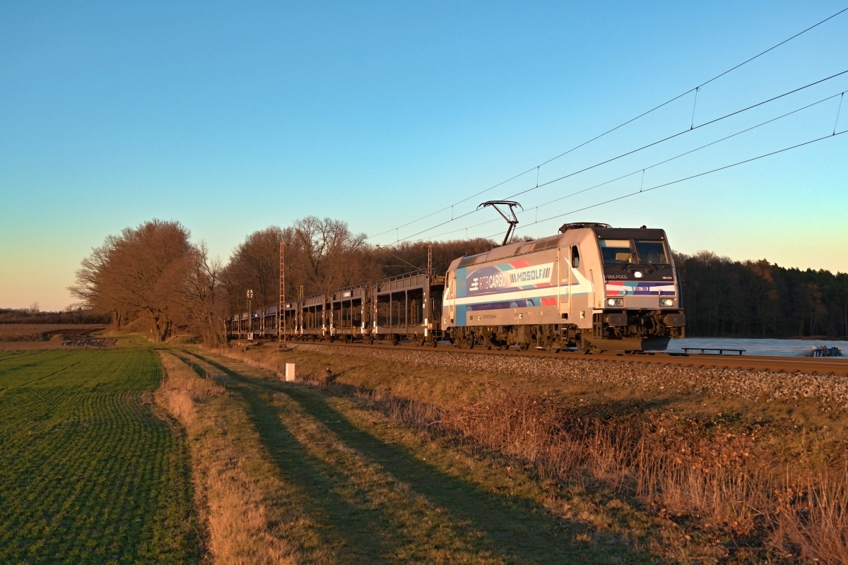 hier am 06.03.2025 bei Lirchhorsten (HKHN) mit Wagenlok 186 530-2