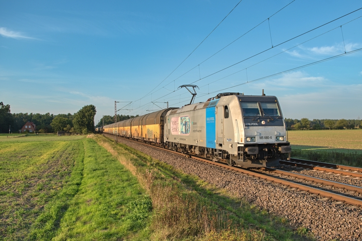 Dto. 185 680-6 am 15.09.2021 im Abendlicht bei Rohrsen (HROR) mit dem DGS