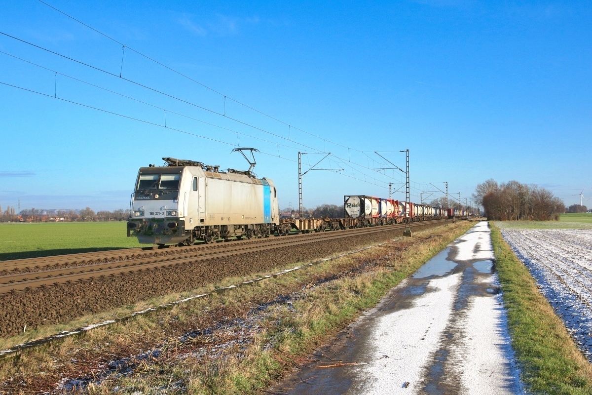 Dto. 186 271-3 am 11.02.2021. Hier war die Lok bei Lindhorst (HLH) Vornhagen