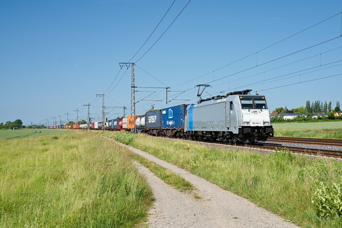 Dto. 186 430-5 am 16.06.2021 morgens bei Bückeburg (HBKB) mit dem DGS 52451 von