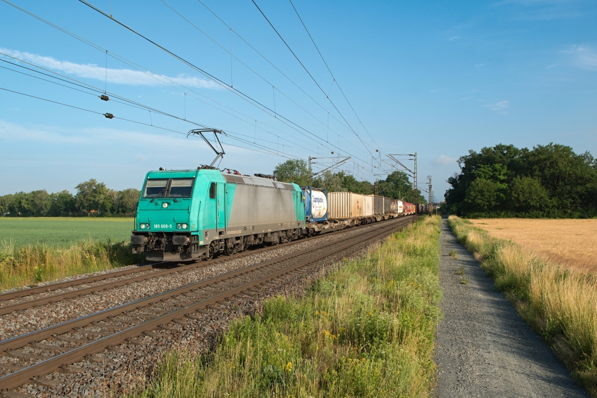 Dto. 185 615-2 früh morgens am 14.08.2023 bei Gollhofen