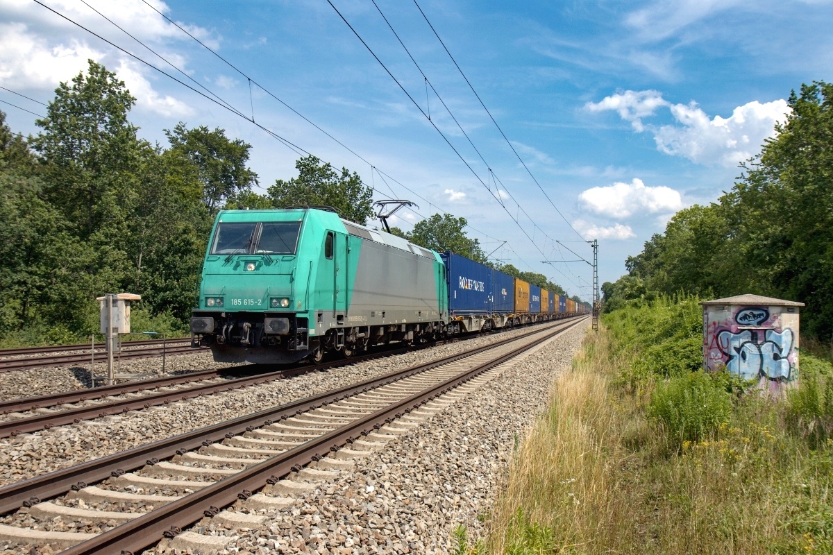 Dto. 185 615-2 am 27.06.2021 bei Altheim (FAT) mit dem DGS 44586 von