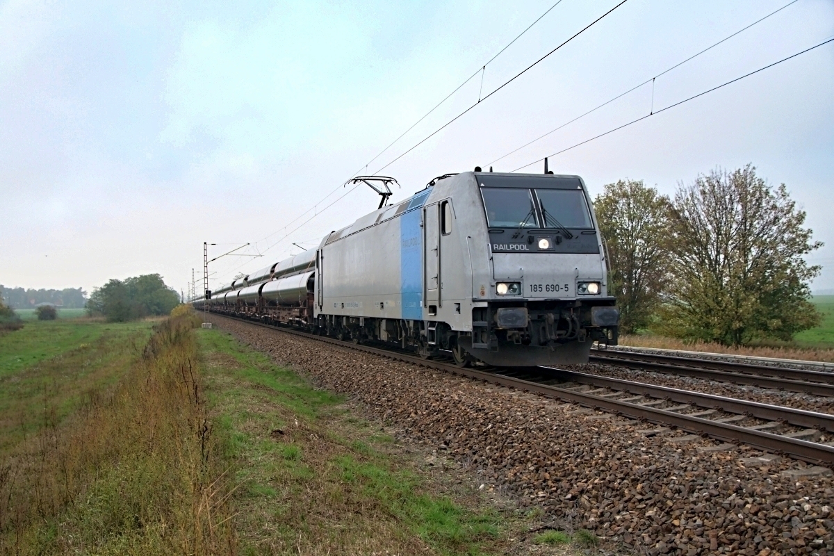 185 690-5 (NVR: 91 80 6185 690-5 D-Rpool) war hier am 24.10.2019 bei Wahlitz (LWH) mit