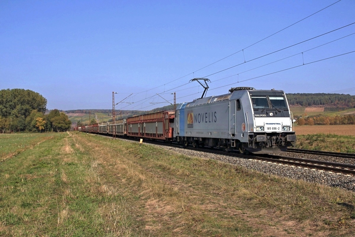 Dto. 185 696-2 am 10.10.2018. Hier passierte die Lok Retzbach-Zellingen mit
