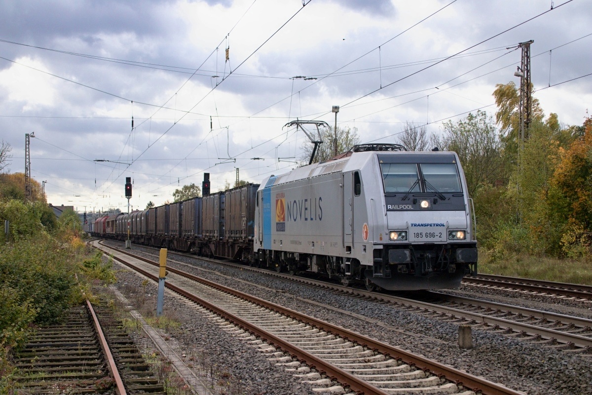 Dto. 185 696-2 am 03.11.2017. Hier passierte die Lok den Bahnhof Banteln