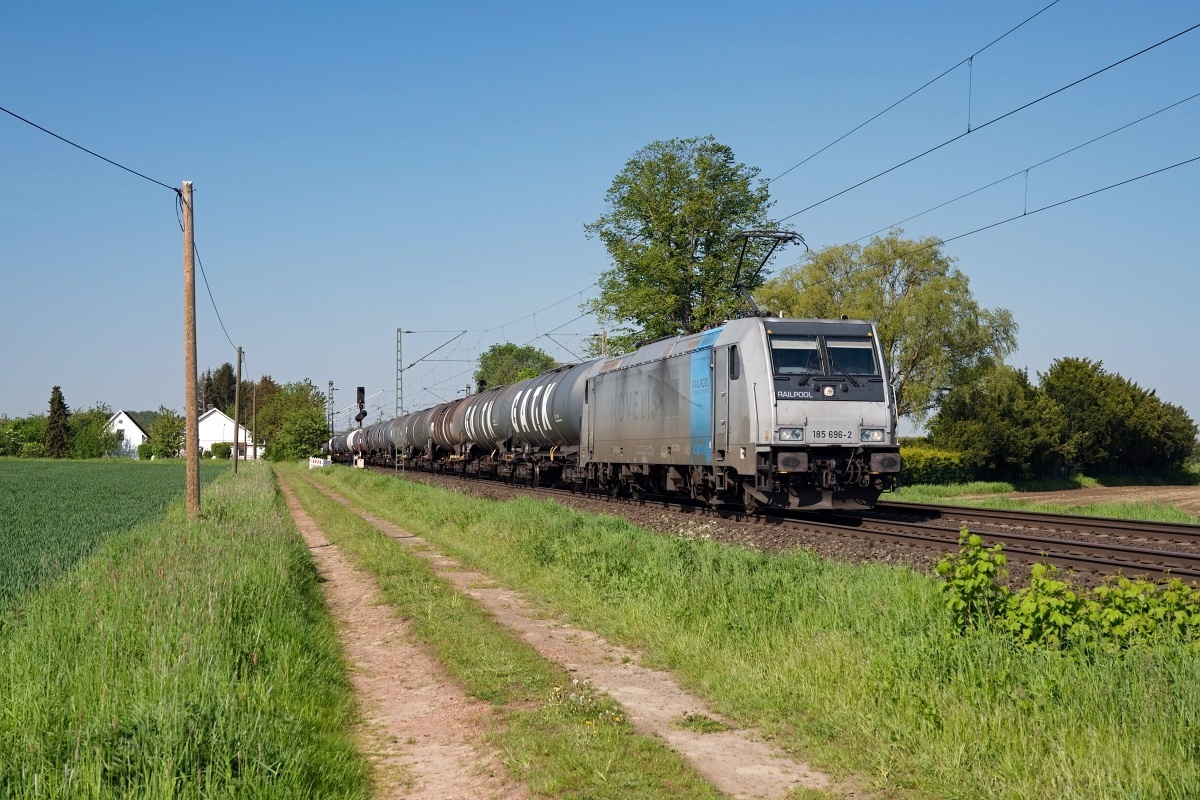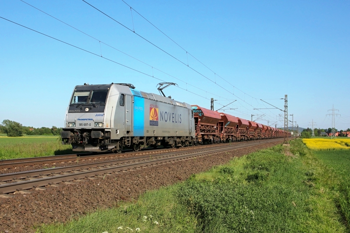Dto. 185 697-0 am 08.05.2018. Hier passierte die Lok Dankersen mit ERMEWA
