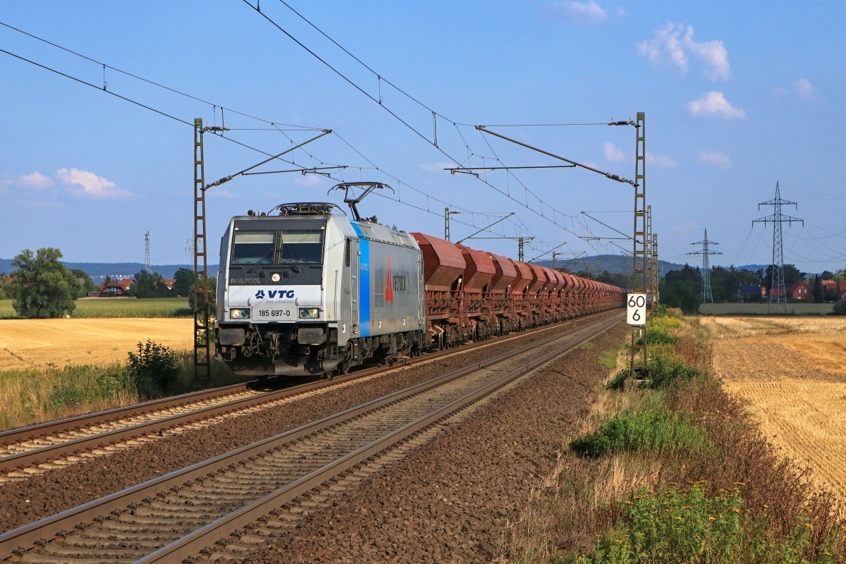 Dto. 185 697-0 am 24.07.2019. Hier war die Lok bei Stadthagen (HSHG)