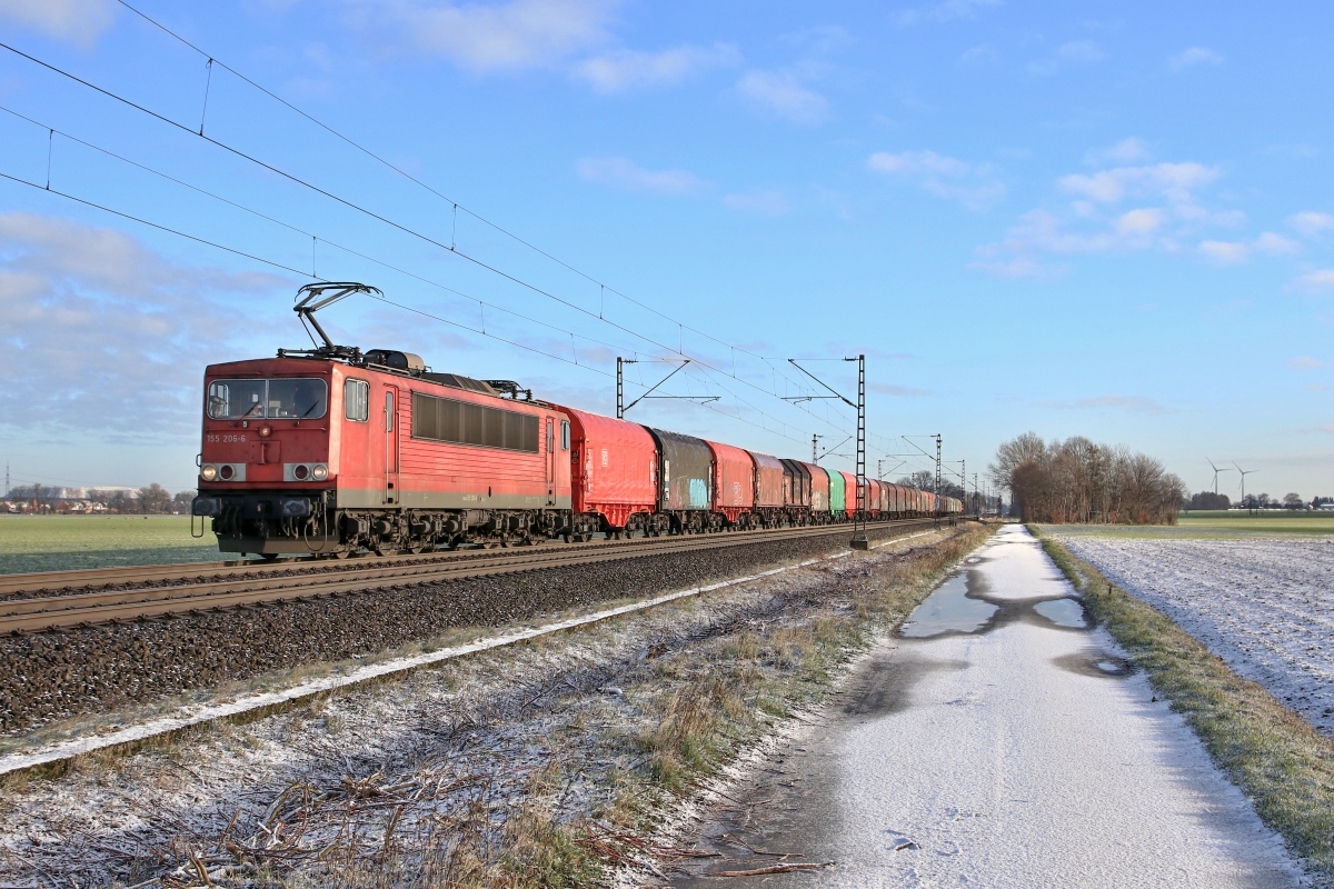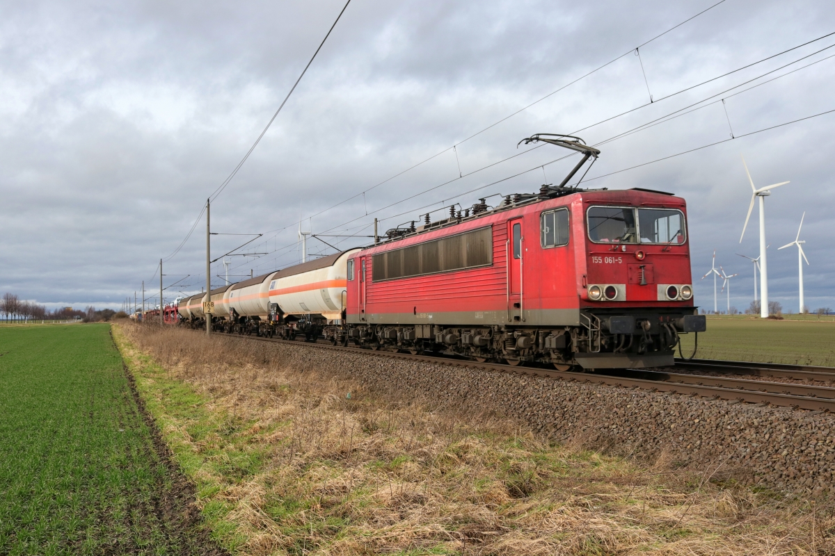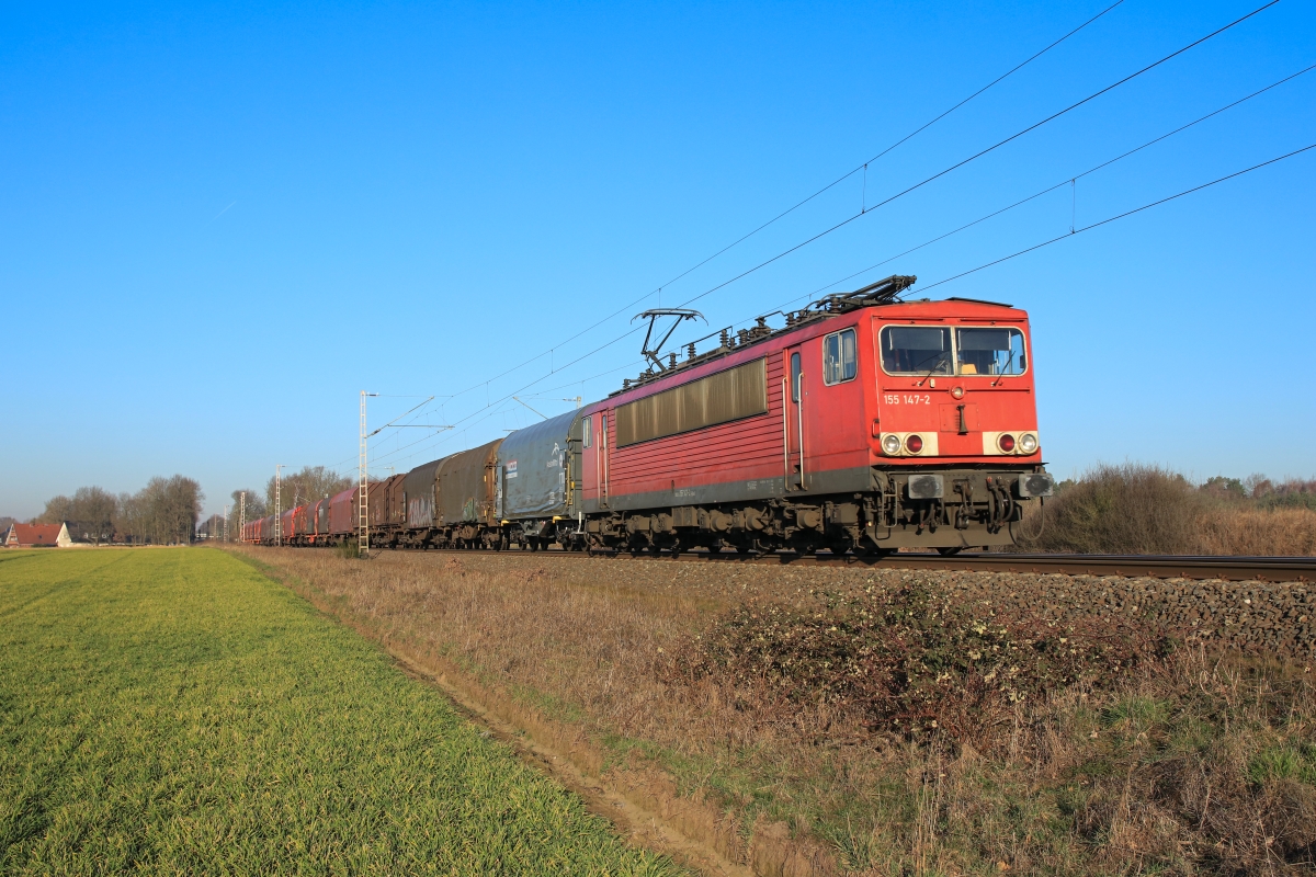 Dto. 155 061-5 am 24.01.2018. Die Lok passierte hier Ovelgünne mit