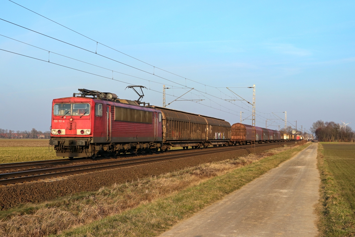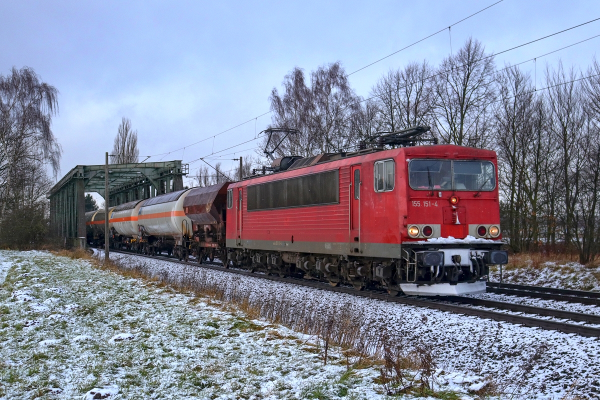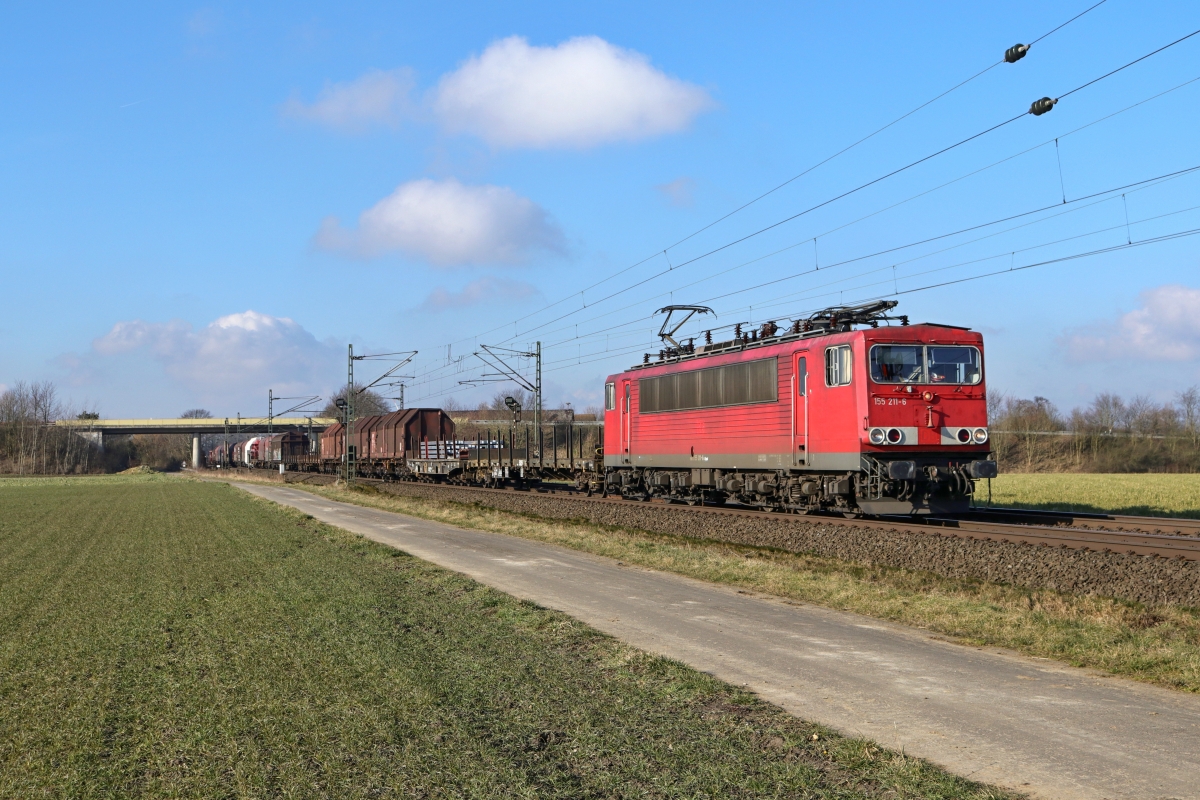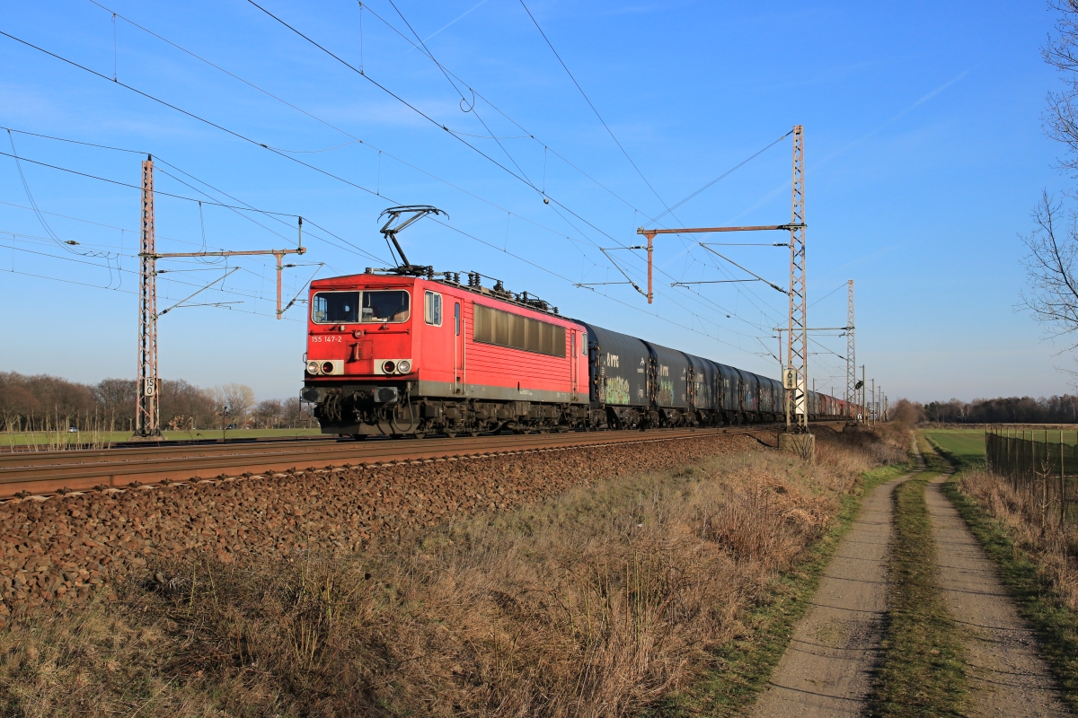Dto. 155 061-5 am 24.01.2018. Die Lok passierte hier Ovelgünne mit