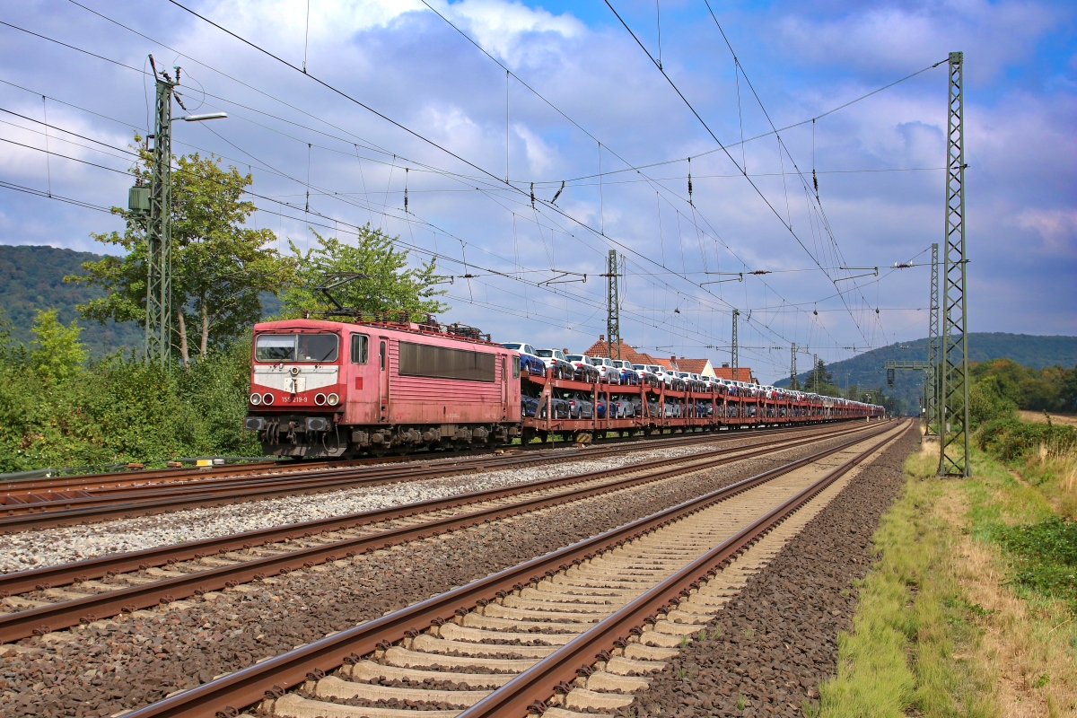 (HDED) mit einem voll beladenen TWA Autozug mit VW Transportern Rtg.