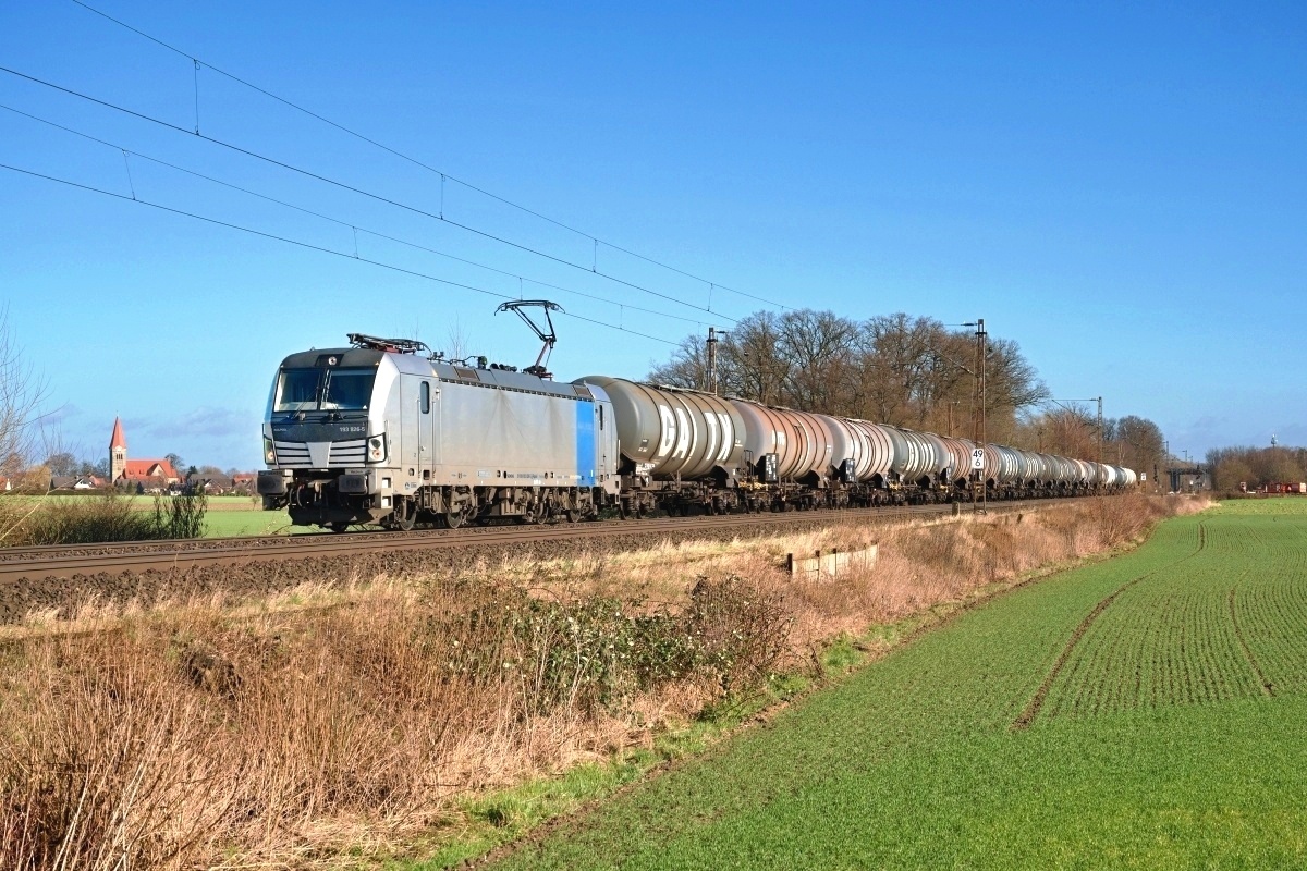Dto. 193 826-5 am 23.02.2023 bei Kirchhorsten (HKHN) mit dem Kesselwagen
