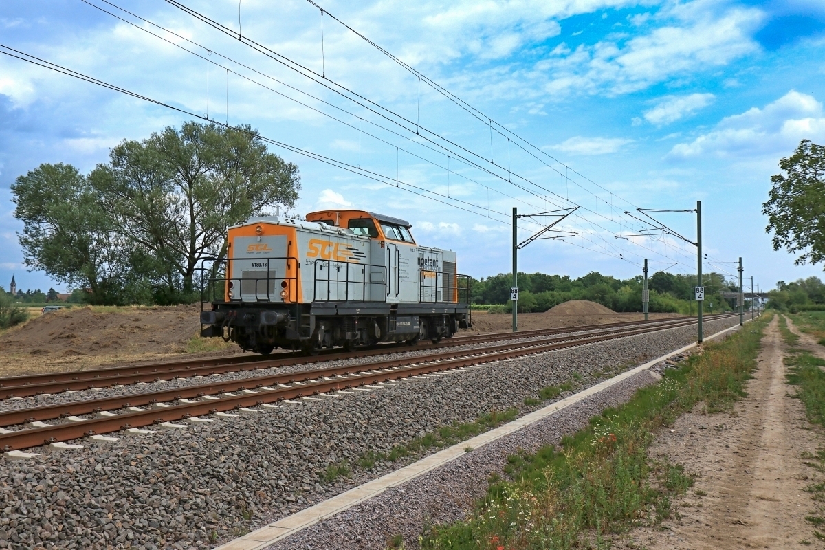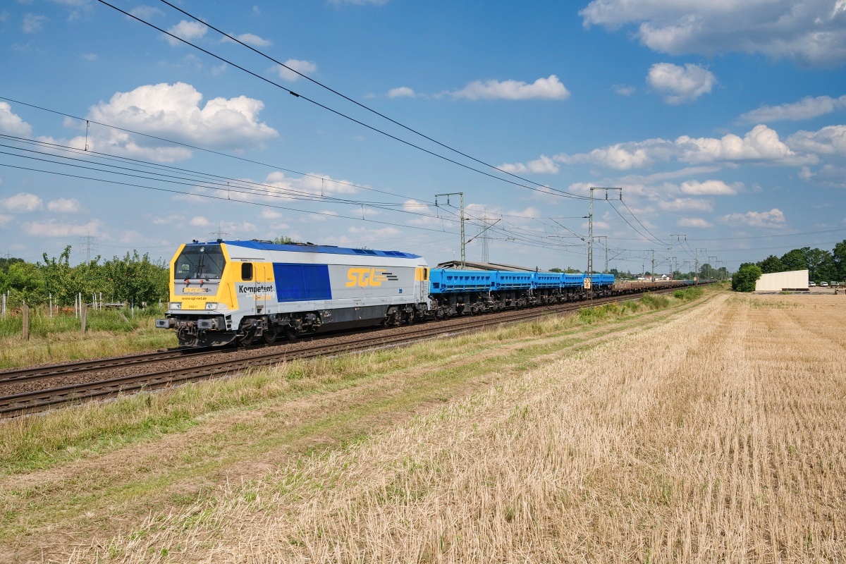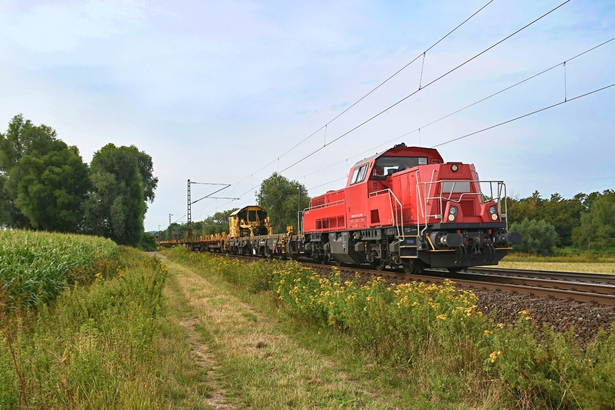Dto. V400.11 -- 263 002-8 am 19.07.2024 bei Klein-Gerau (FKGE) mit einem Bauzug