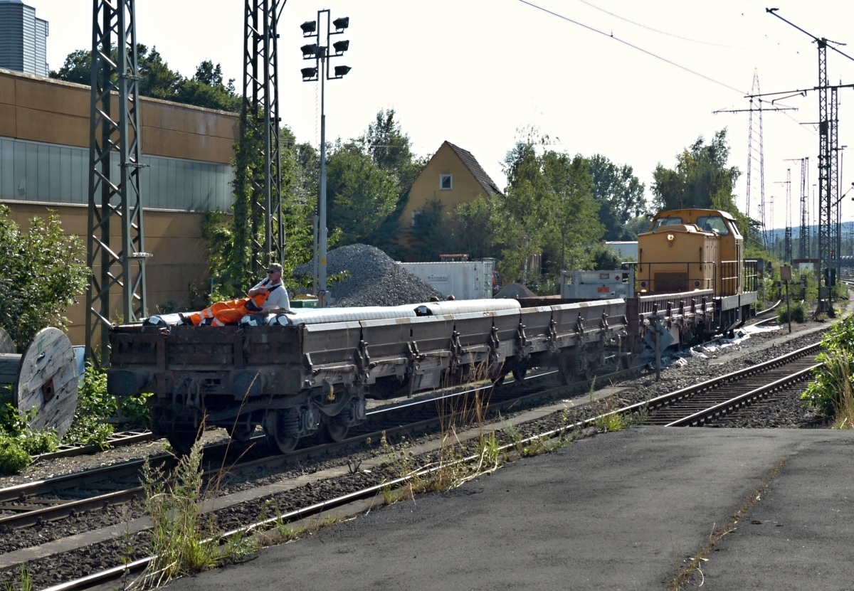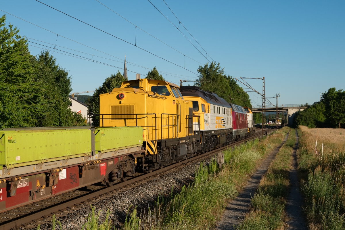 Hinten hing die Schotterbettreinigungsmaschine RM 80/99-UHR (97 1140 501 18-2 D-EPOOL) getauft auf "Emma" dran.