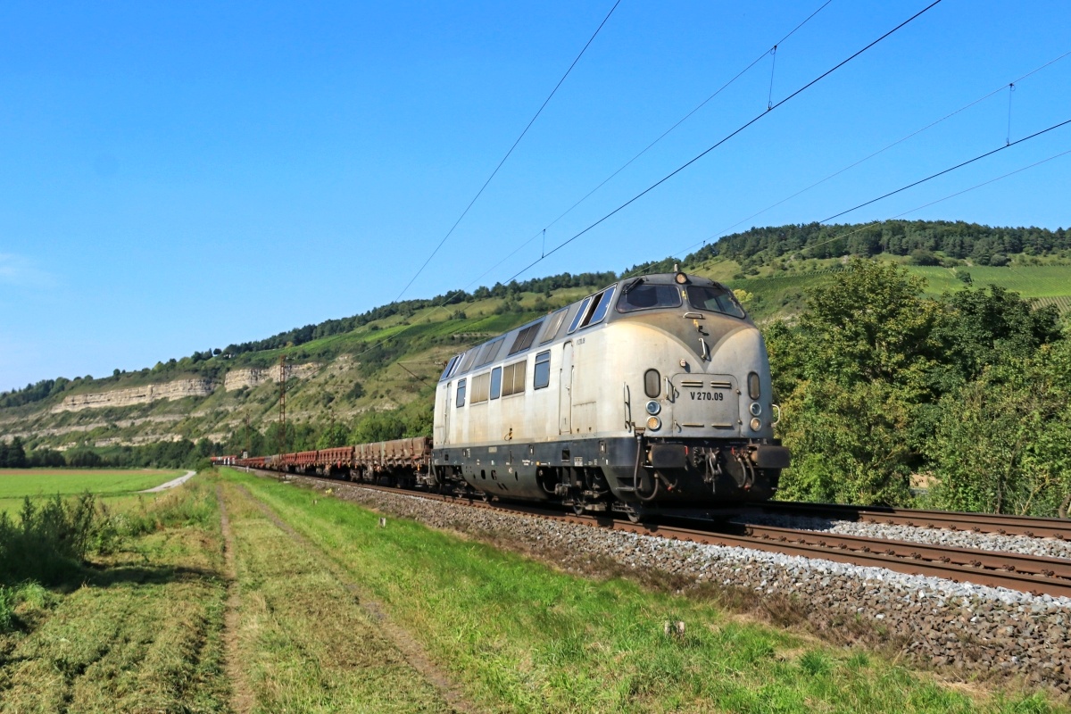 V270.09 - 221 121-7 (NVR: 92 80 1221 121-7 D-SGL) passierte hier am 23.08.2017 Thüngersheim mit unbeladenen Res Rtg. Süden...