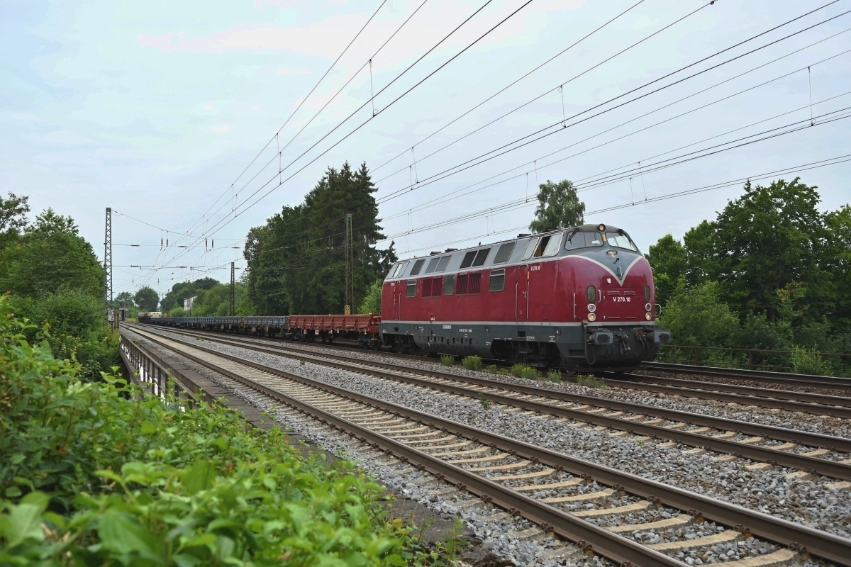 "Volle Kanne in den Rücken" unterwegs. 293 510-4 zog die Wagenloks 221 124-1, 232 446-5 und 203.005-4 sowie einem Ganzzug aus EFM Sgns