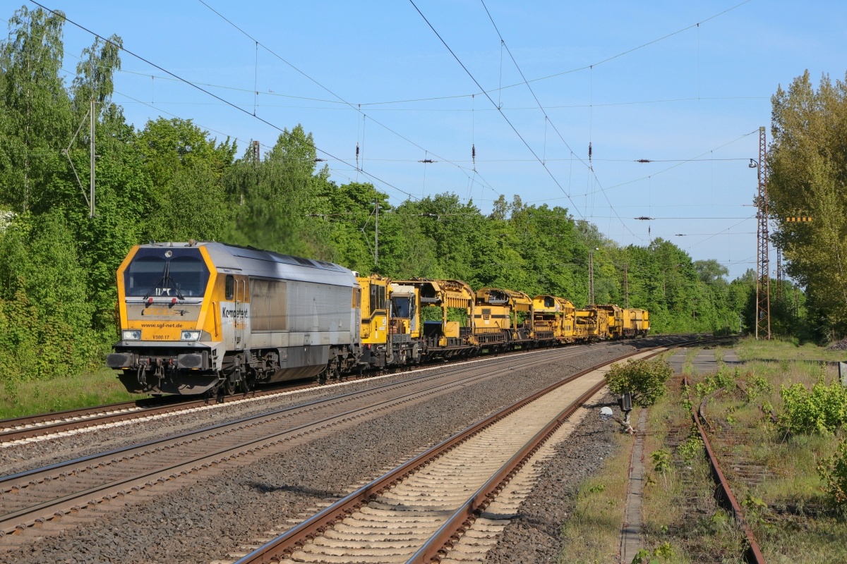 V500.17 -- 264 010-0 (NVR: 92 80 1264 010-0 D-SGL) passierte  hier am 04.05.2018 Banteln (HBAN) mit einem Bauzug Rtg. Süden/Göttingen...