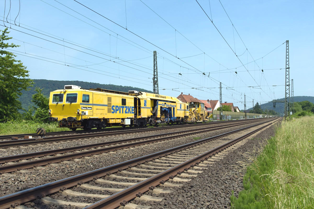 einem klurzen unbeladenen Gleisbauzug Rtg. Hanover-Waldhausen unterwegs...