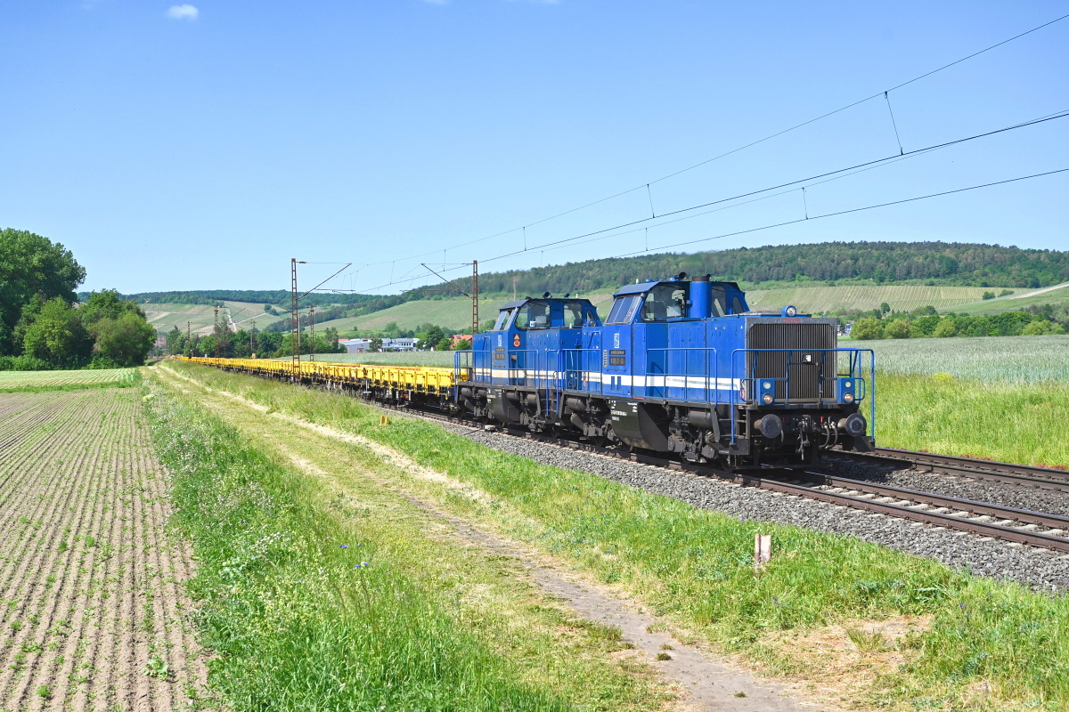 hier am 26.05.2023 mit 214 015-0 und einem Res Ganzzug Rtg.