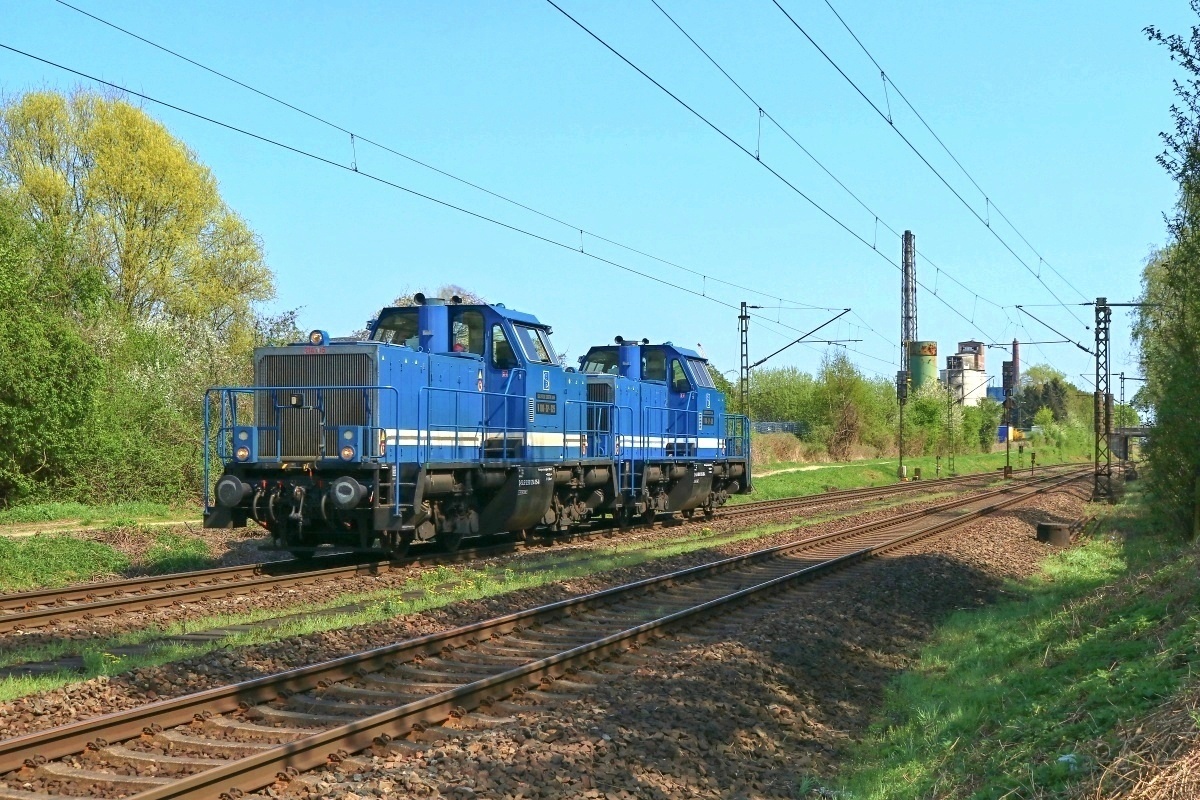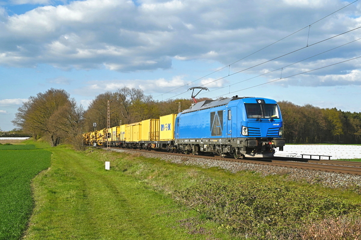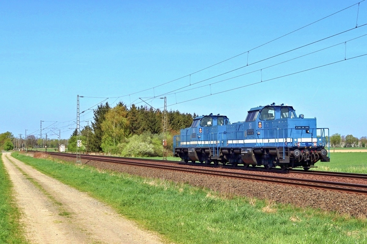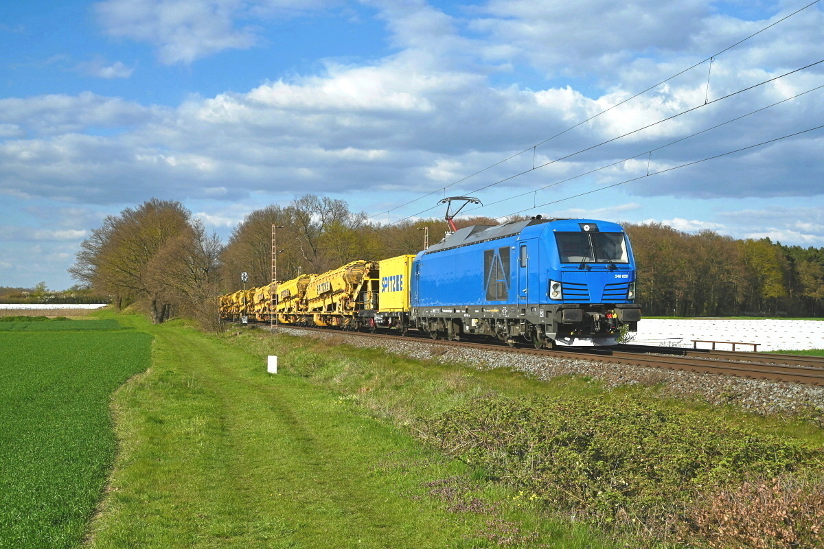 war hier am 19.04.2023 bei Poggenhagen (HPOG) Liethe mit einem Bauzug Rtg.