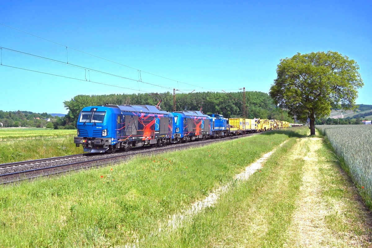 (NREZ) mit 248 029-1. Beide Loks im aktuellem "SLG" Werbedesign mit