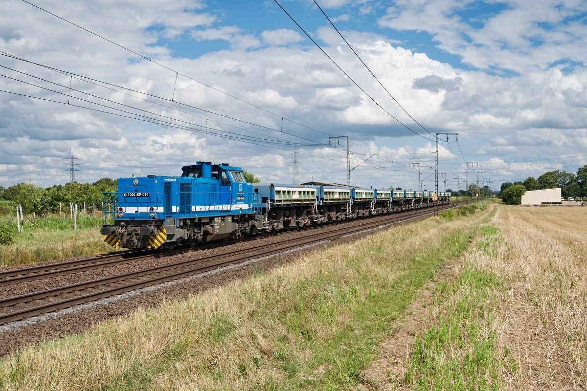 Ganzzug Rtg. Westen/Groß-Gerau (FGER) und weiter auf das Ried unterwegs...