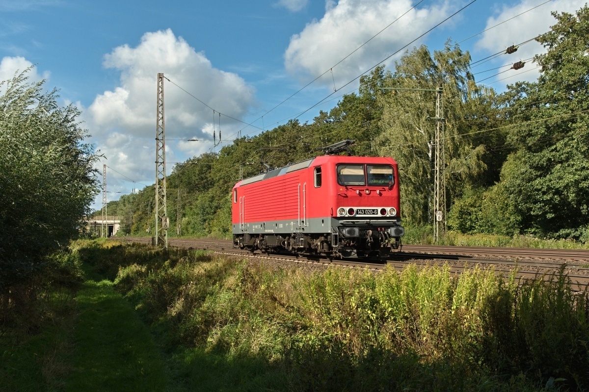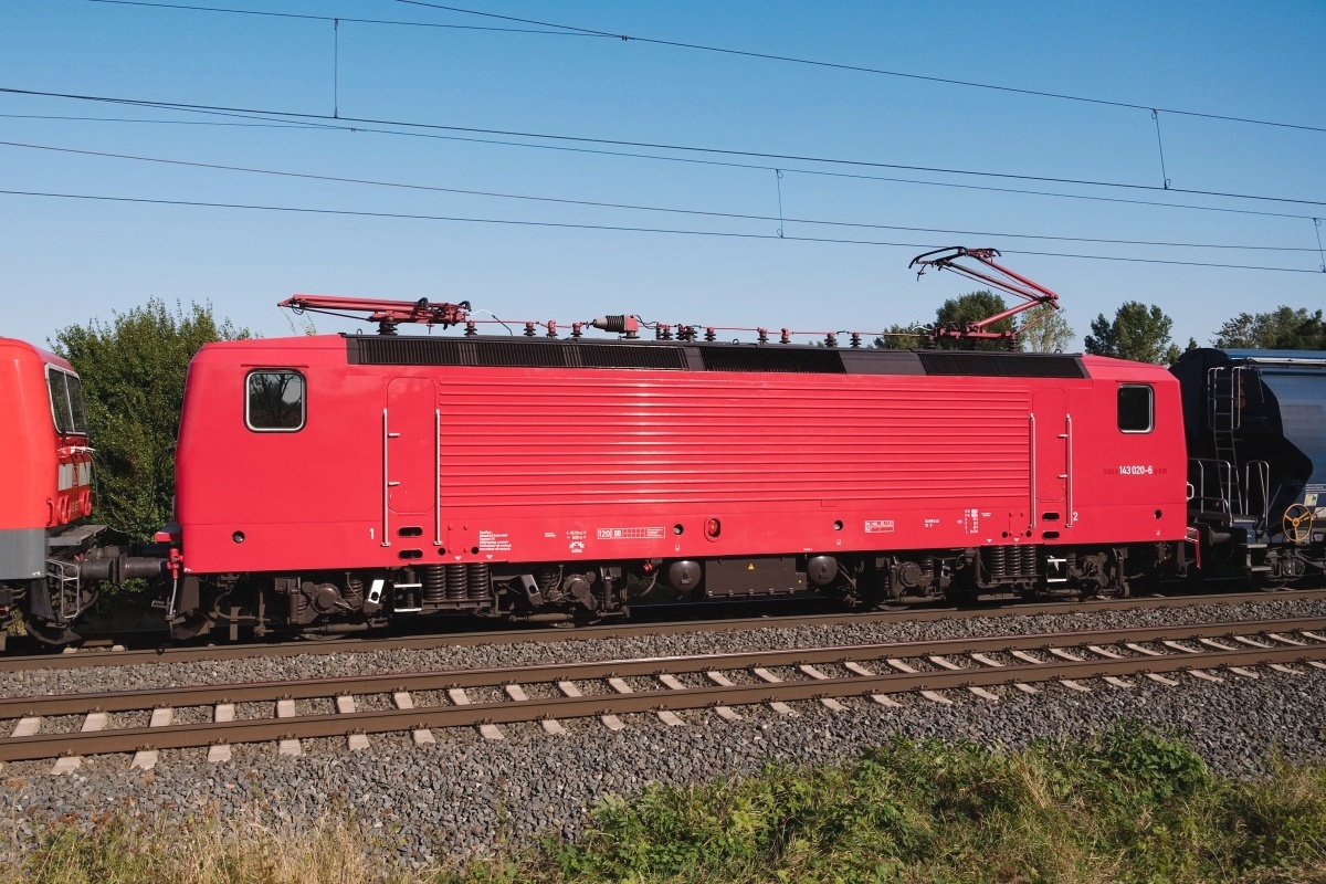 Dto. 143 020-6 im aktuellen SLRS Design orientrot mit Latz am 20.09.2024 bei