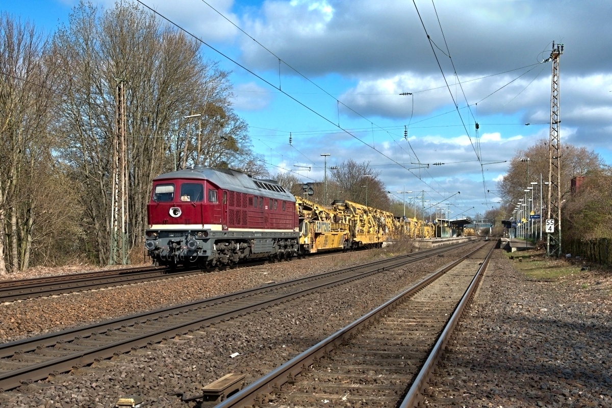 war hier am 01.04.2021 im Bückeburger Bhf mit einem Spitzke Bauzug Rtg. Westen/Löhne