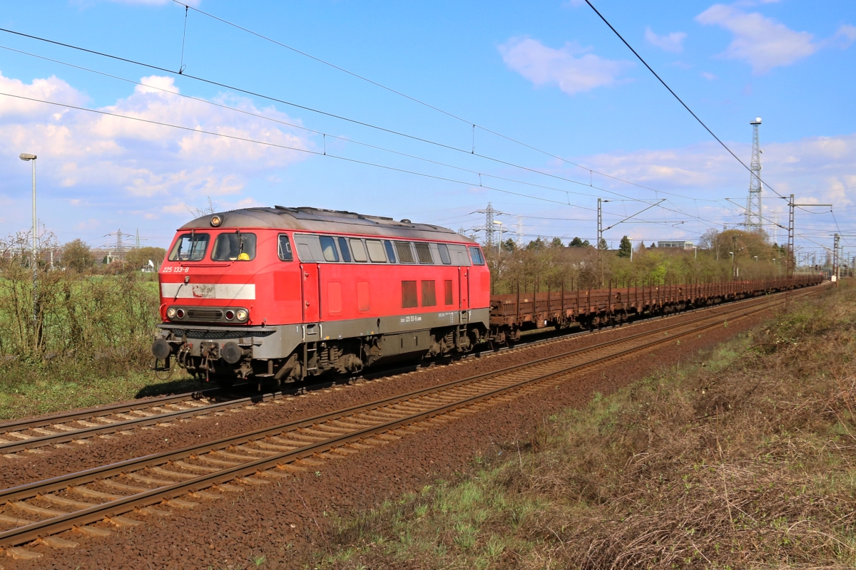 Stuttgarter Bahnservice Ltd. 225 133-8 (NVR: 9280 1 225 133-8 D-STGBS) war hier am 07.04.2016 mit unbeladenen Res bei Ahlten Rtg. Hannover-Waldheim unterwegs...