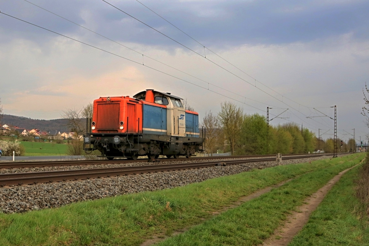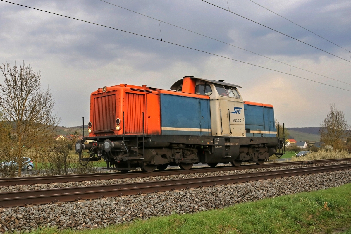 212 242-2 (NVR: 92 80 1212 242-2 D-STVG) passierte hier als Tfzf am 10.04.2018 Thüngersheim Rtg. Norden... Dto. im Seitenzoom...