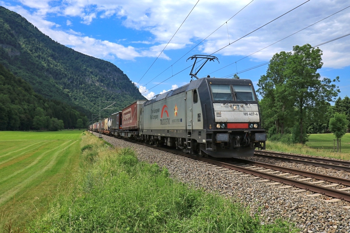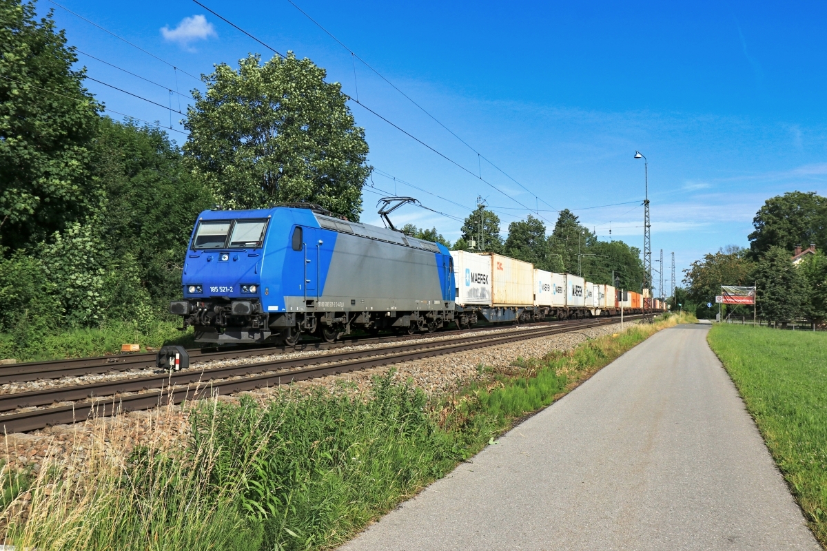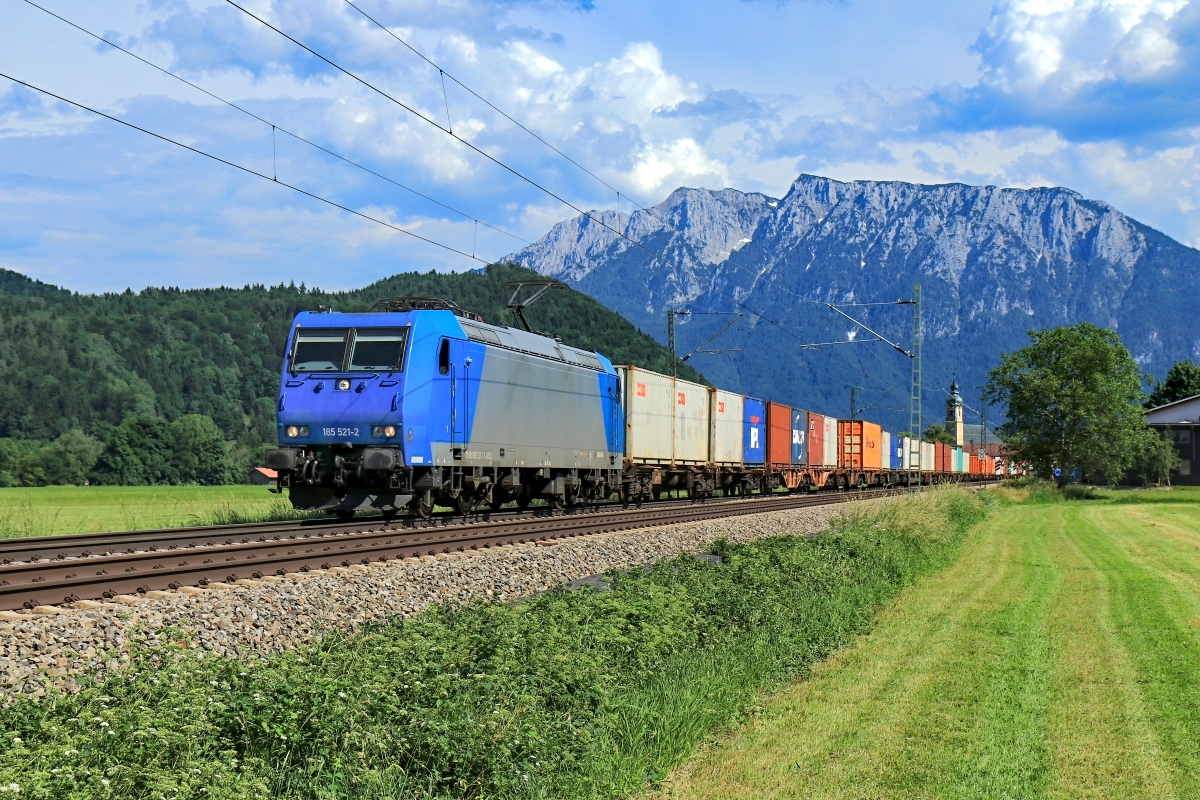 Dto. 185 521-2 am 21.06.2019. Hier passierte die Lok Brannenburg (MBB)