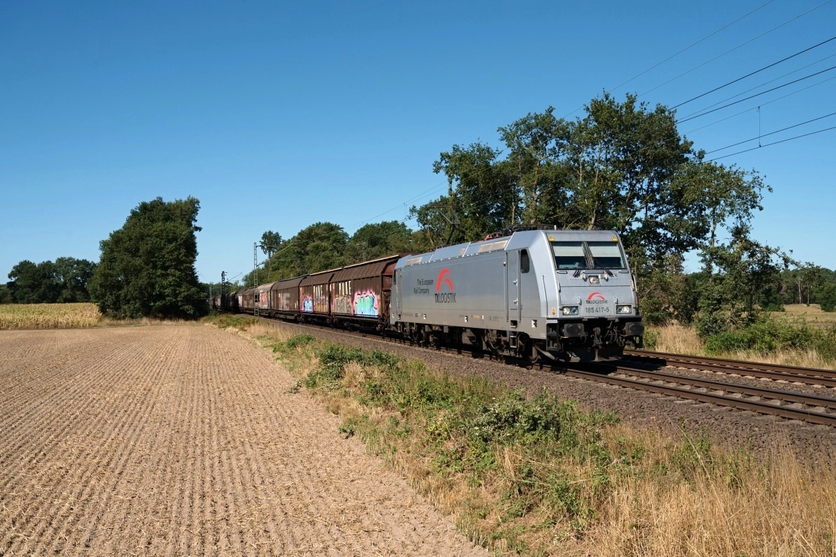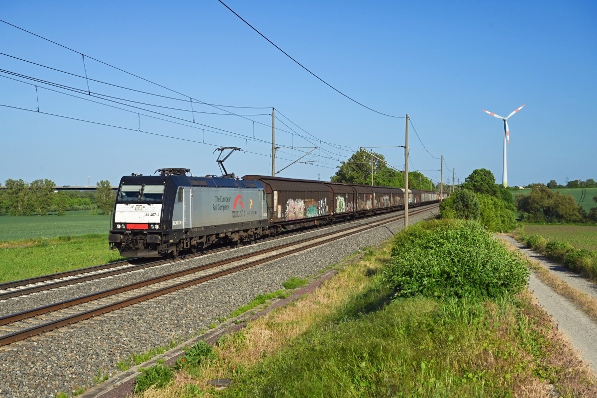 Dto. 185 407-4 am 09.08.2018. Hier passierte die Lok Freden (HFRE)