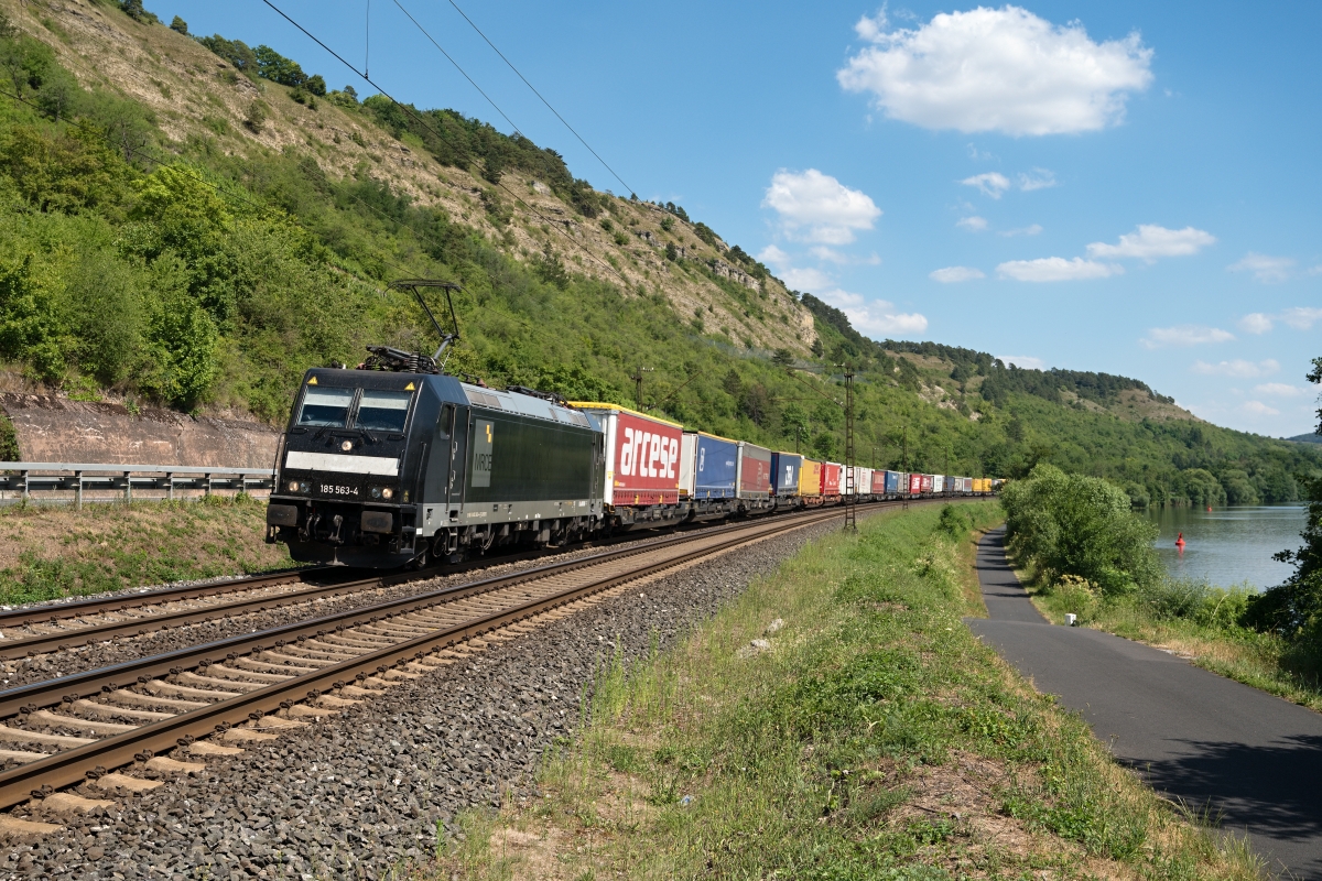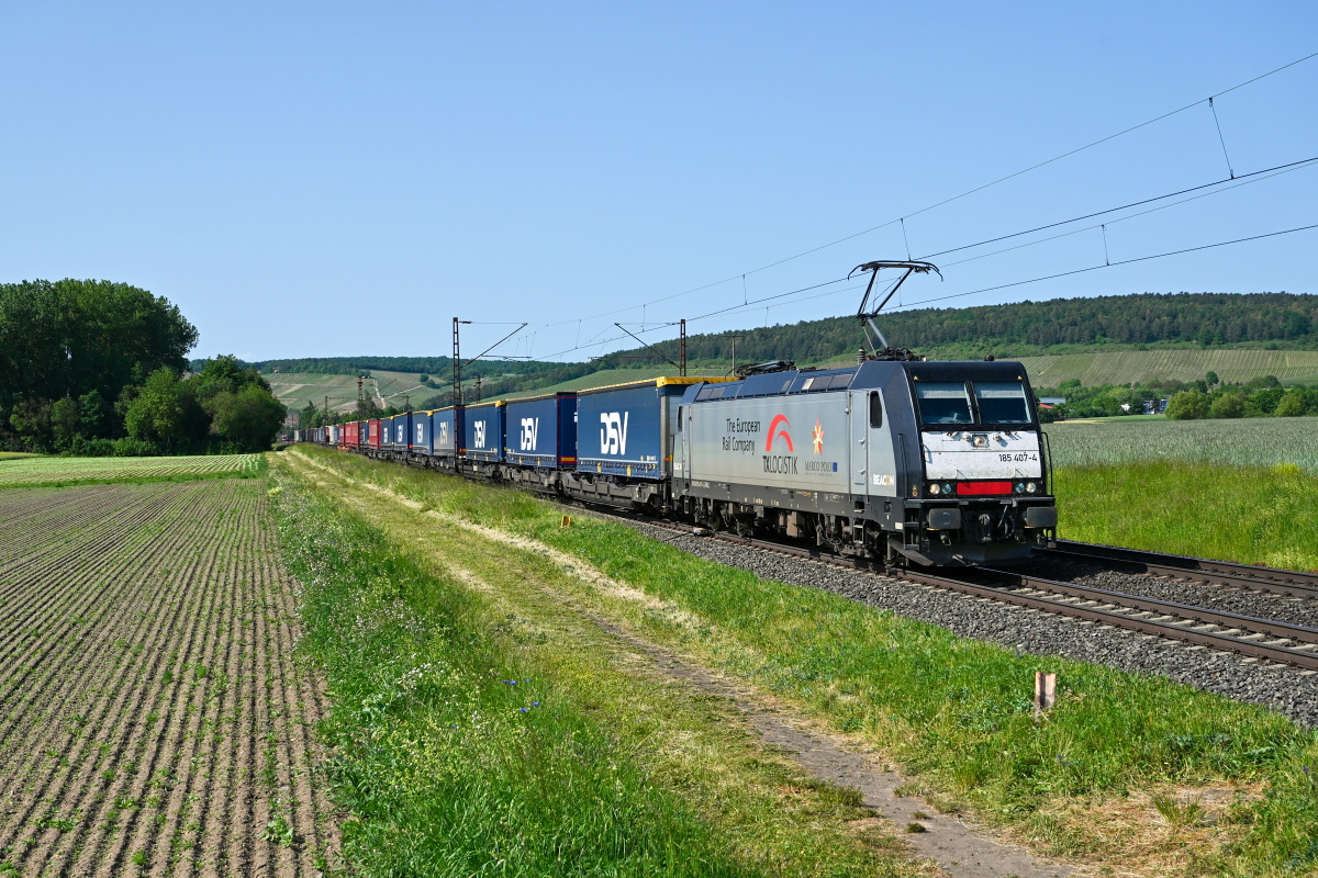 Dto. 185 407-4 am 26.05.2023 bei Retzbach-Zellingen (NREZ) mit dem Lübecker
