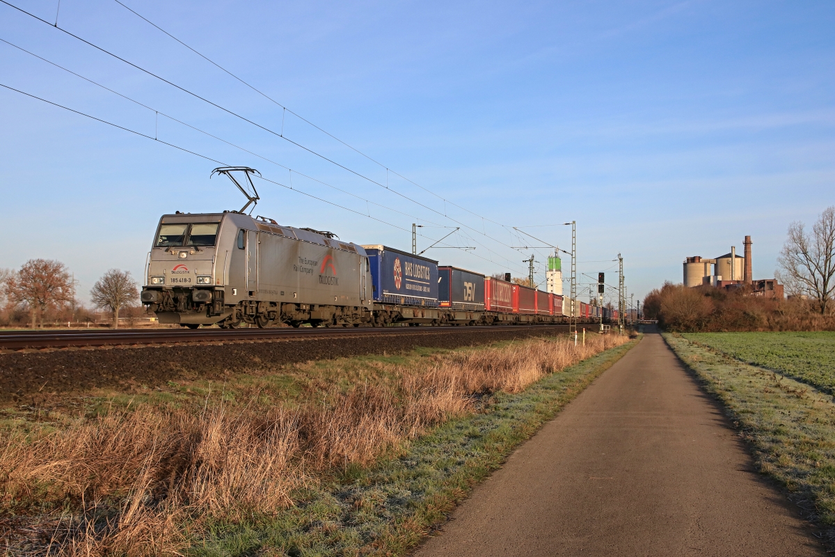 Dto. 185 418-3 am 05.12.2018. Hier war die Lok bei Weetzen (HWEZ) mit