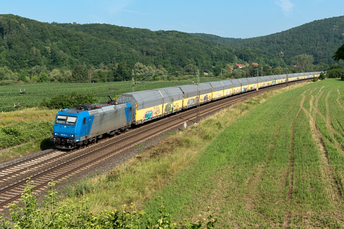 Dto. 185 521-2 am 03.07.2021 bei Harrbach im Maintal mit dem DGS 59909