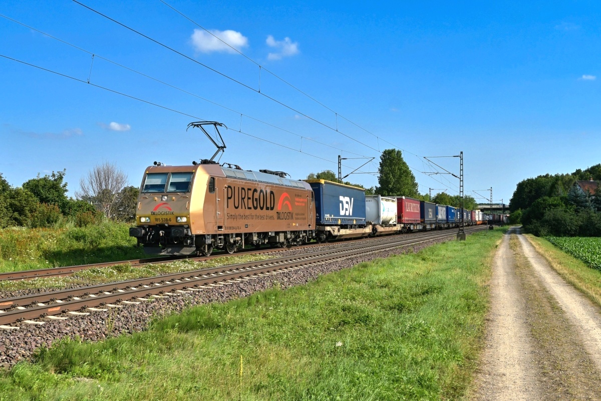 Dto. 185 538-6 im aktuellen Werbedesign "Pure Gold". Die Lok war hier am