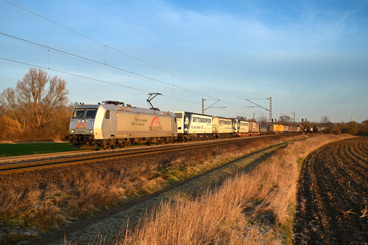 Dto. 185 139-4 im goldenen Morgenlicht am 09.02.2023 bei Elze (HELZ) mit