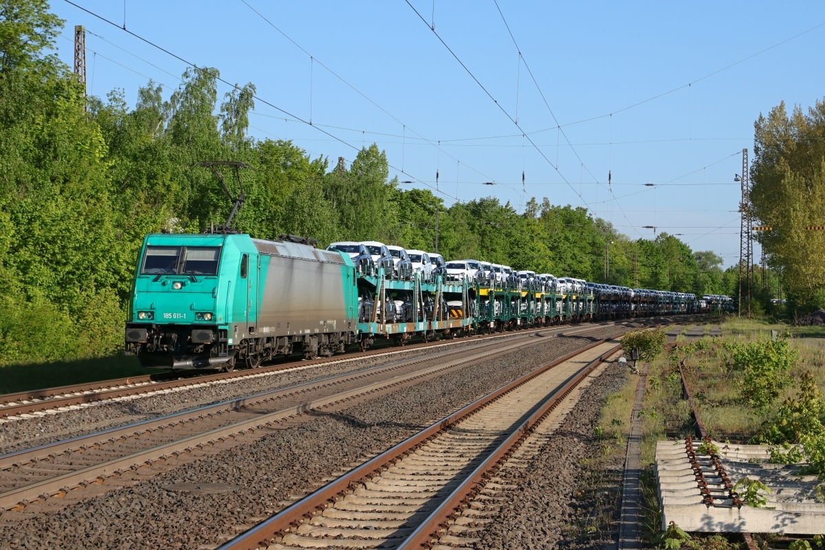 Dto. 185 611-1 am 04.05.2018. Hier passierte die Lok Banteln (HBAN) mit voll