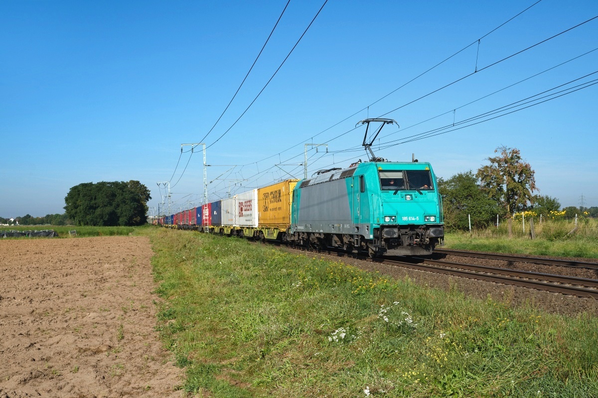Dto. 185 614-5 am 26.09.2023 bei Klein-Gerau (FKGE) mit einem Kölner KLV