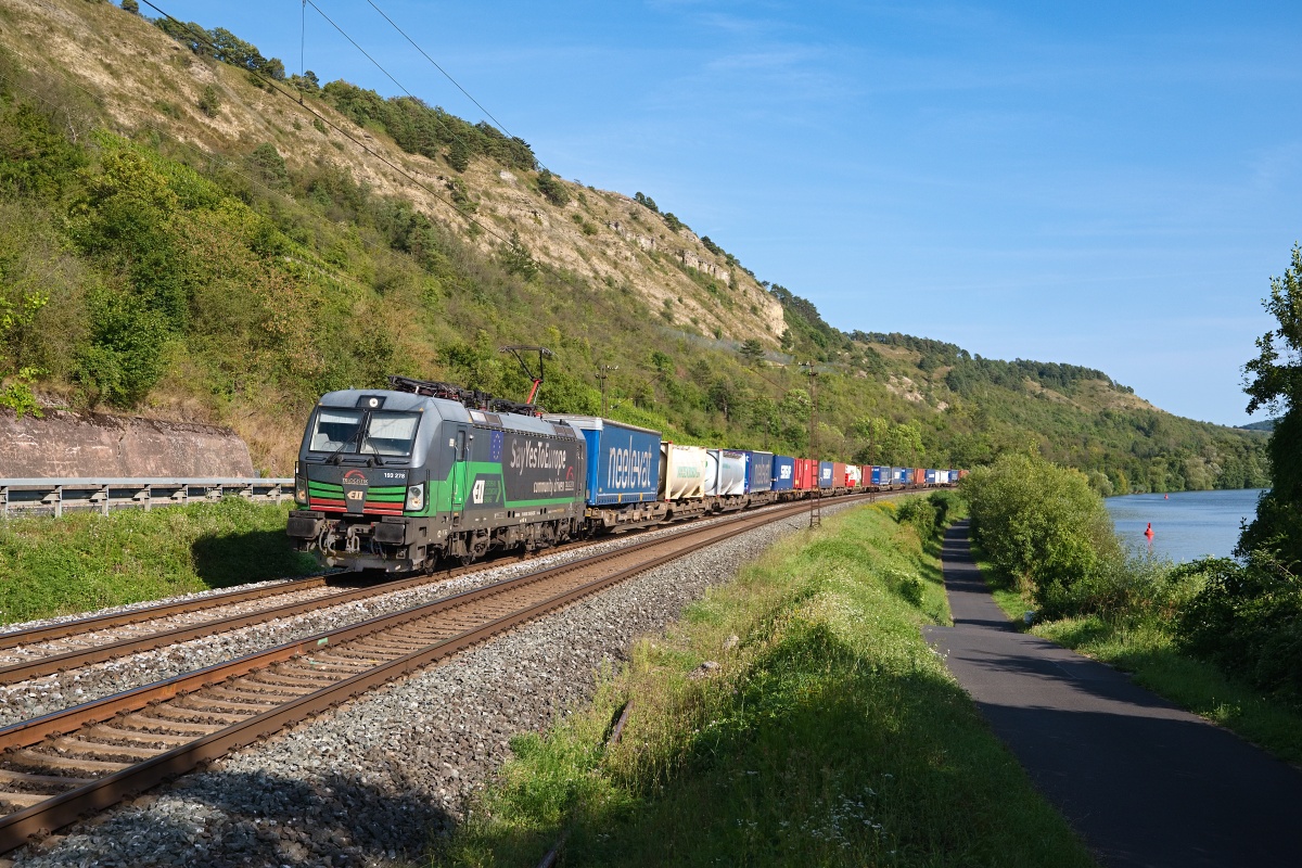 bei Harrbach im Maintal mit 192 010-7 "Blaues Wunder" und einem CT-Zug