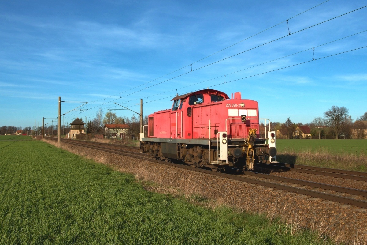 295 020-2 (NVR: 9880 3 295 020-2 D-UEG) passierte hier am14.03.2020 Böhla bei Priestewitz als Tfzf Rtg. Osten/Dresden-Friedrichstadt...