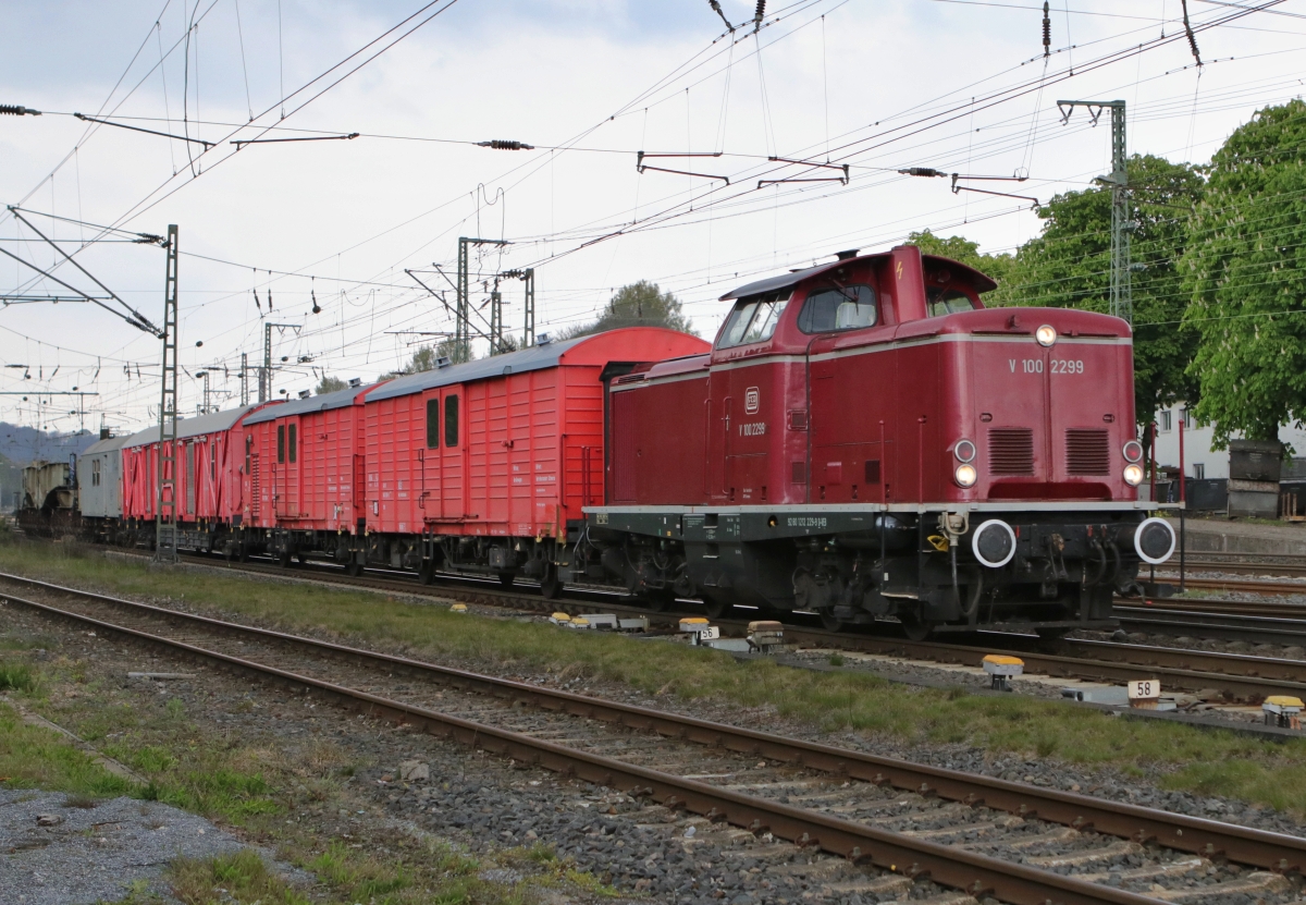 V 100 2299 -- 212 229-9 (NVR: 92 80 1212 229-9 D-VEB) passiert mit