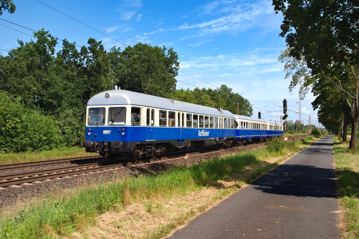 plus dem mit "Kaffkieker" beschrifteten Motorwagen T 3 (NVR: 95 80 0303 001-1