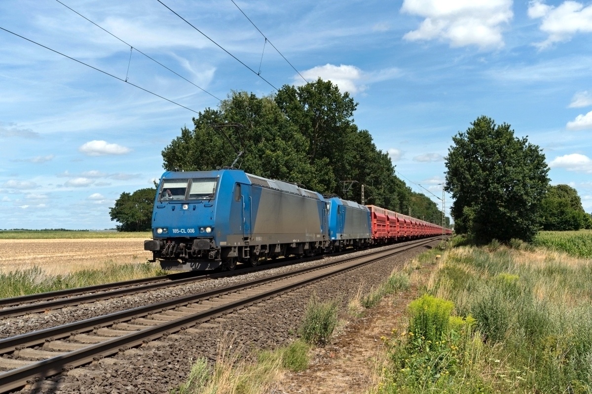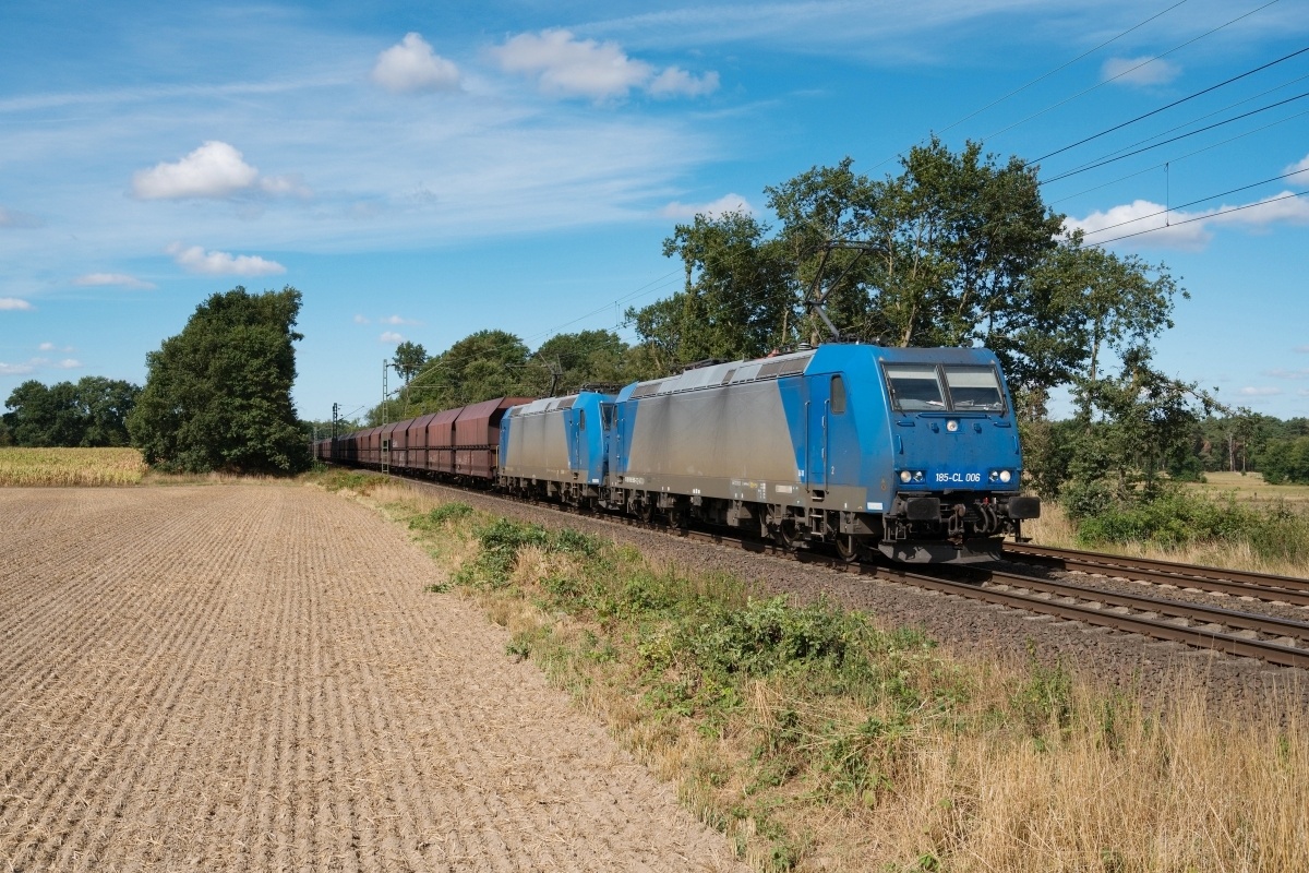 Dto. 185 506-3 am 31.08.2022 bei Linsburg (HLBU) Borstel mit 185 511-3