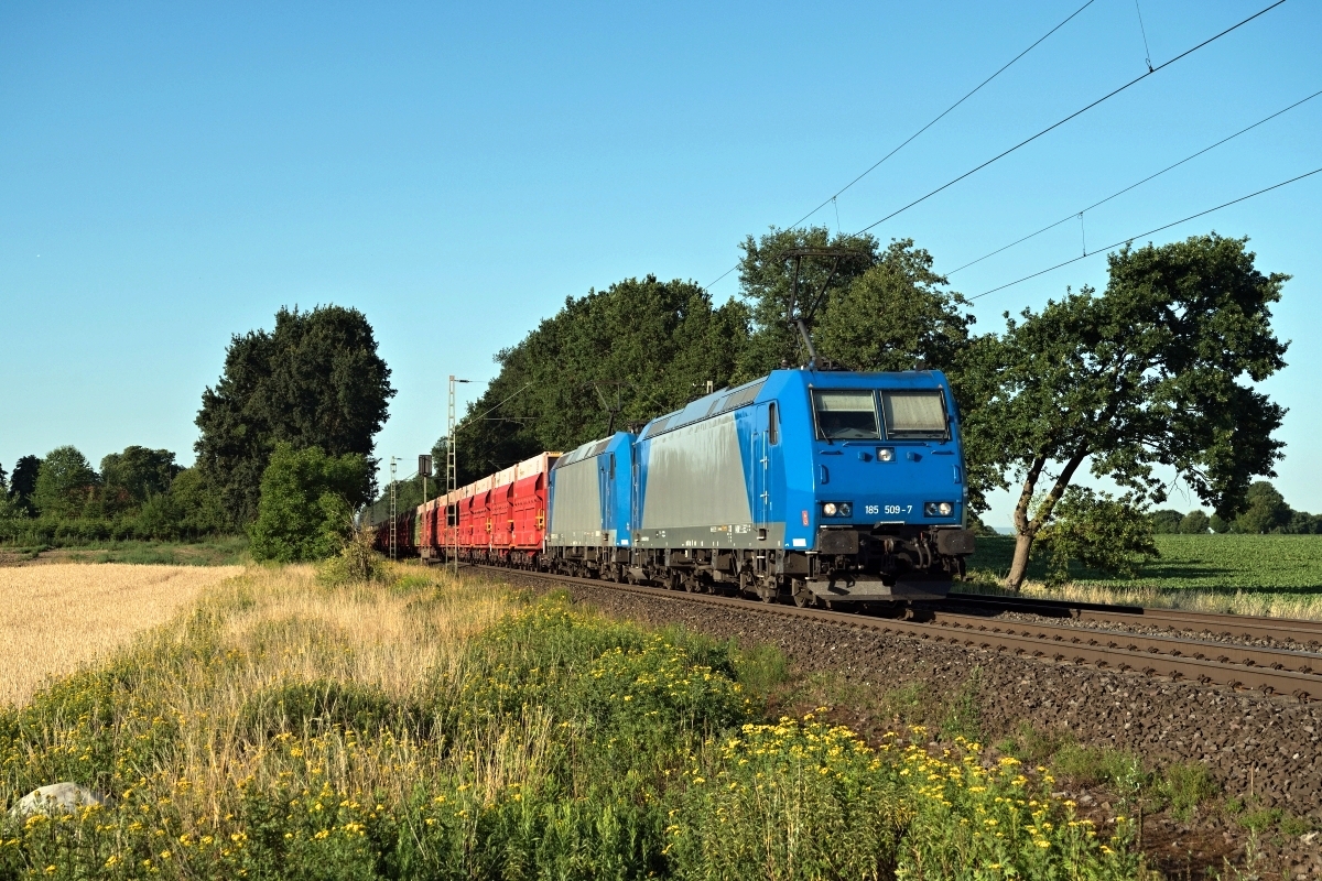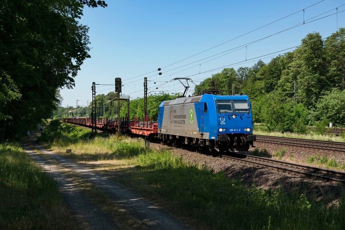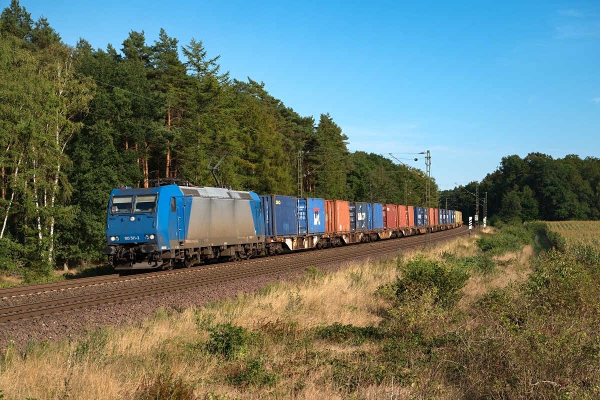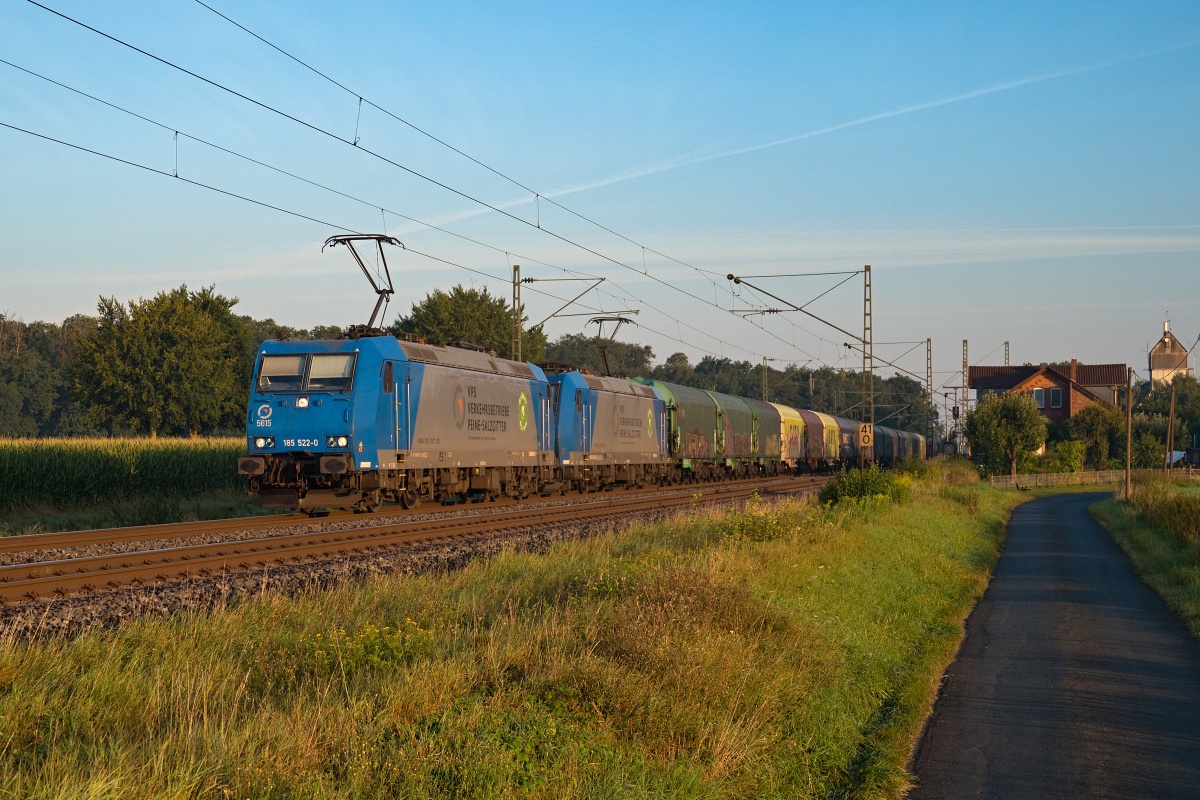 war hier am 27.07.2022 früh morgens bei Poggenhagen (HPOG) Liethe mit 185 511-3 und dem