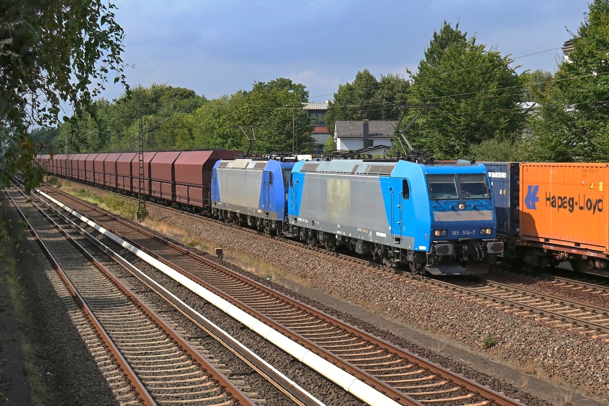 Dto. 185 514-7 mit 185 508-9 am 01.09.2016. Hiersind die Loks in Hamburg Unterelbe mit dem
