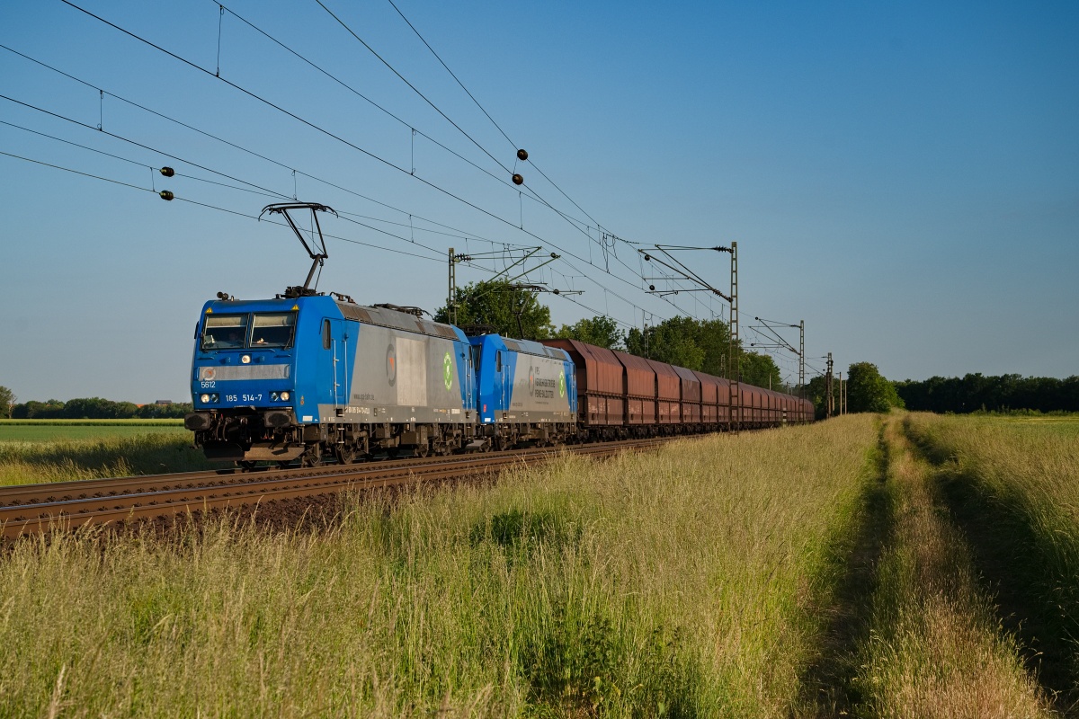 Dto. 185 514-7 am 13.06.2023 kurz nach SA bei Woltorf (HWOT) mit 185