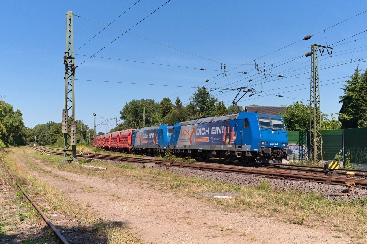 Dto. 185 516-2 mit der aktuellen Werbefolie "LOK DICH EIN!". Die Lok